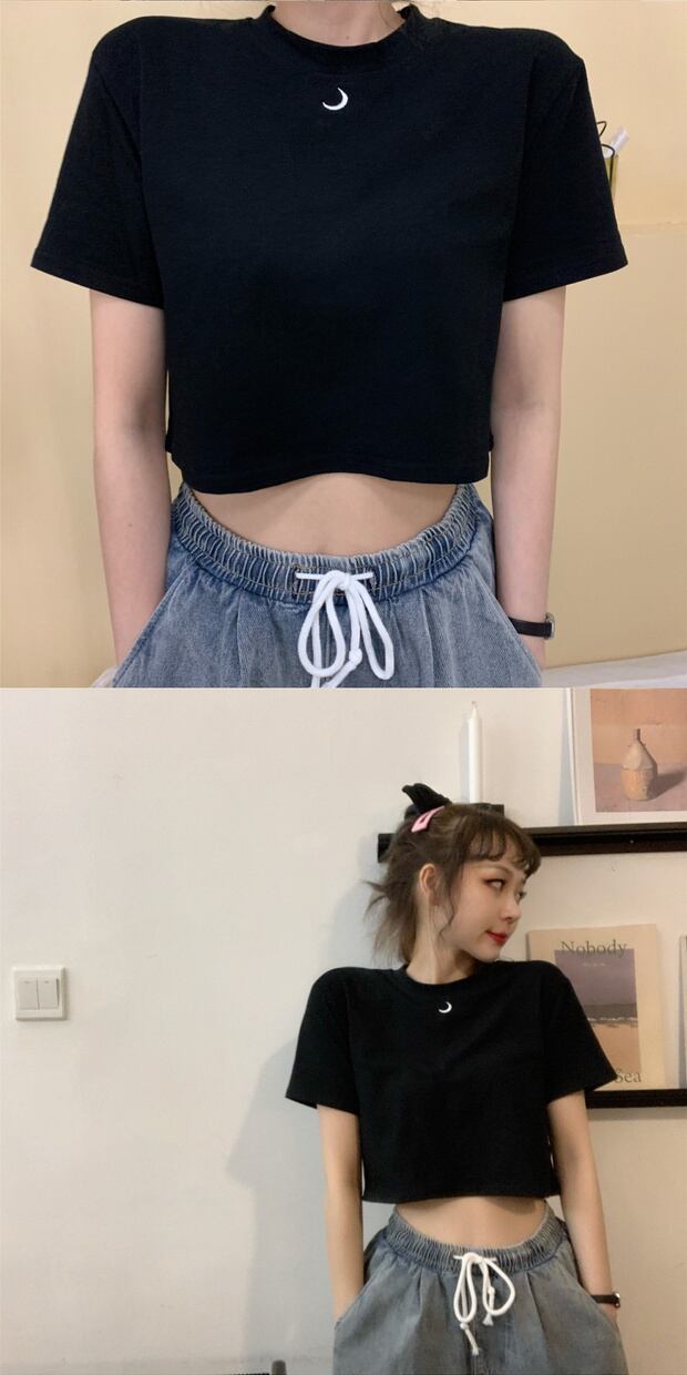 サマールーズブラックショートTシャツ レッド コットン 刺繍 夏物 ケッペル24364799883