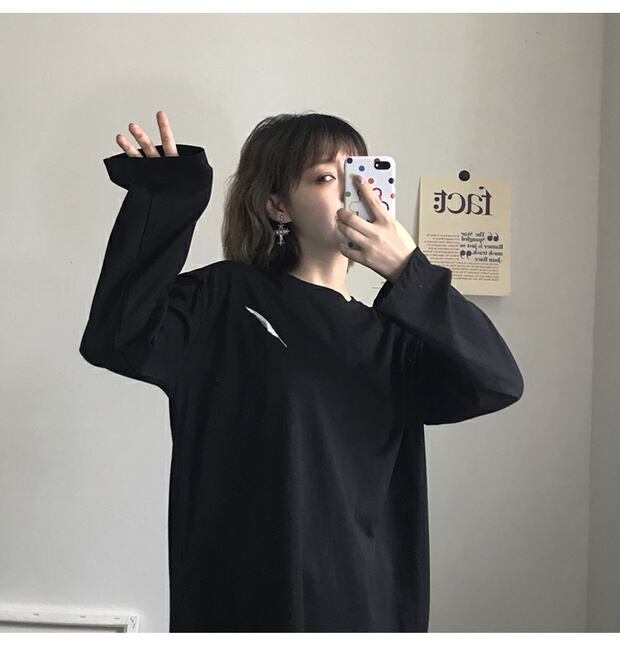 ルーズカジュアルTシャツ シャツ レディースプリントスプリングトップス ロング 大きめサイズ 春物 ケッペル84868213206