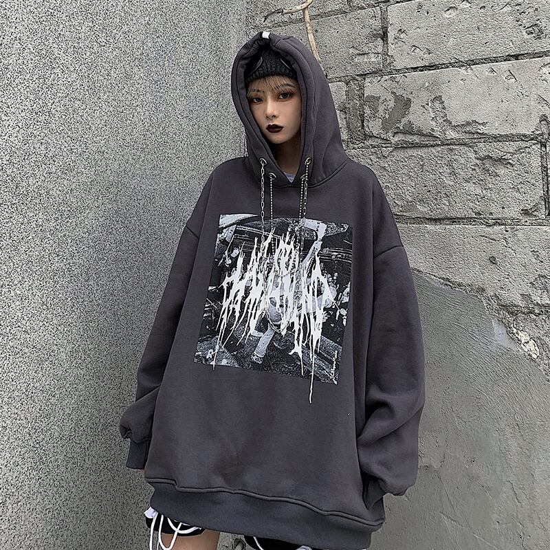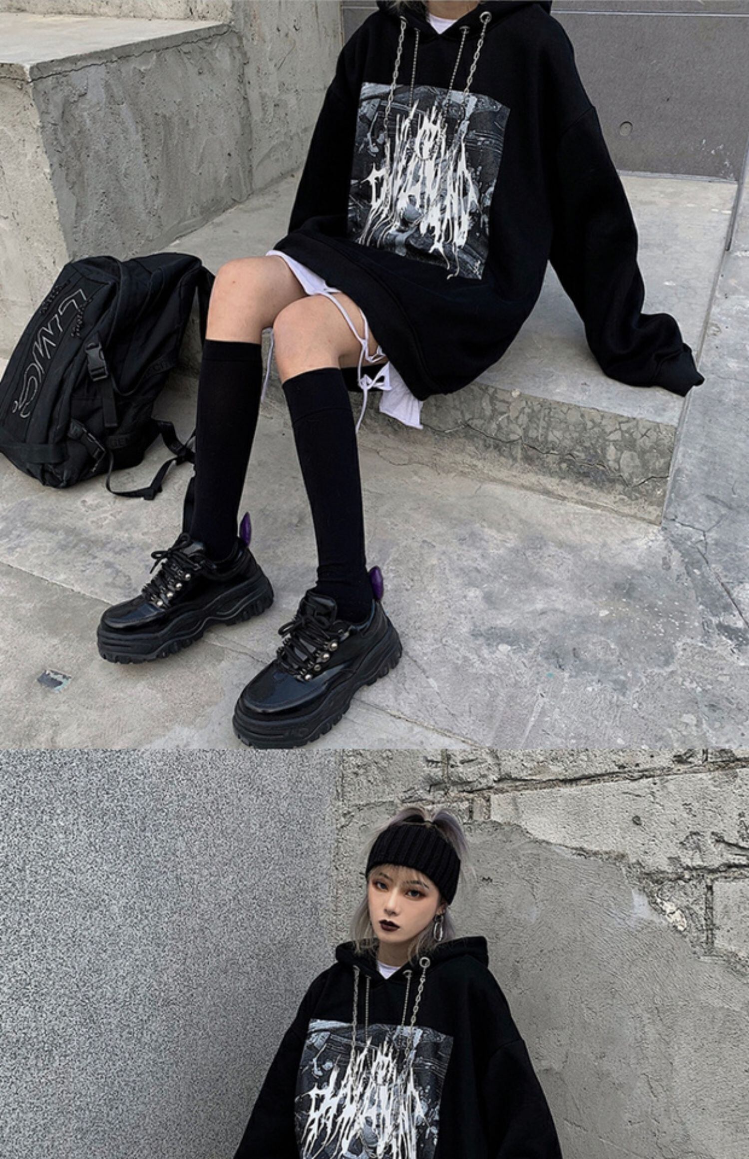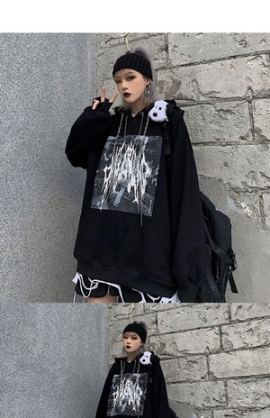 スタイルダークブラックセーター レディースベルベットフードルーズトップス ロング かわいい ケッペル48061509673