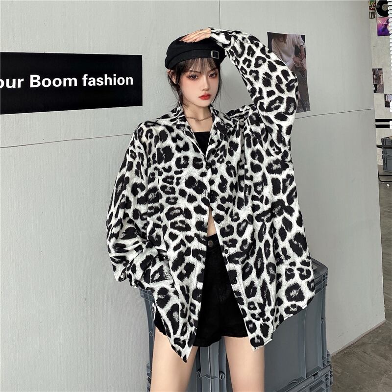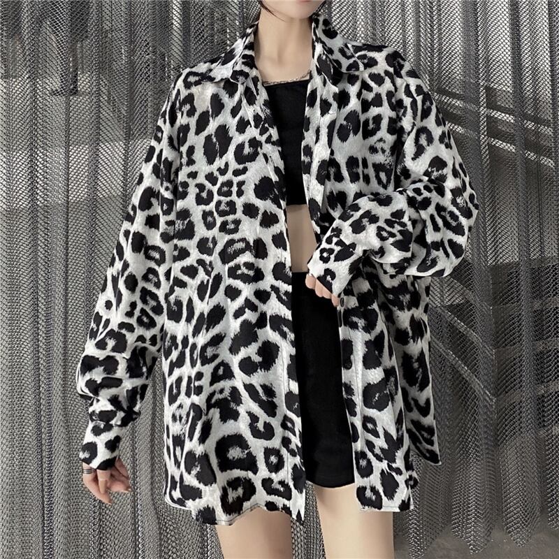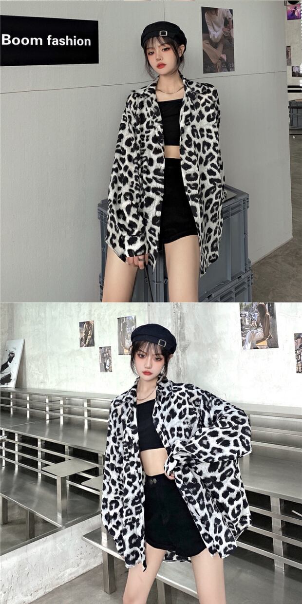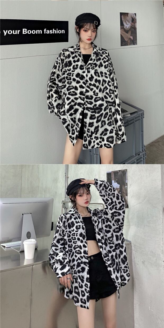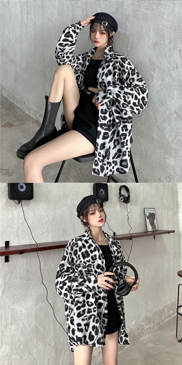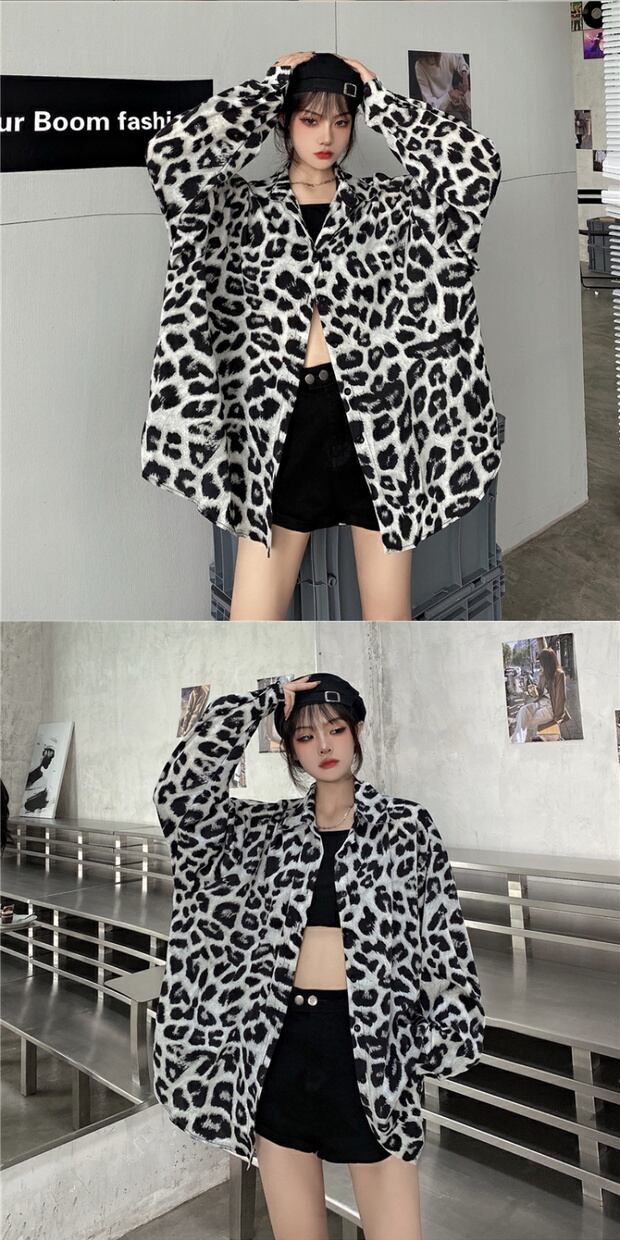 スタイルレオパードシャツ カジュアルトップス ルーズ薄手シャツ ロング ストリート かわいい ケッペル64643633780
