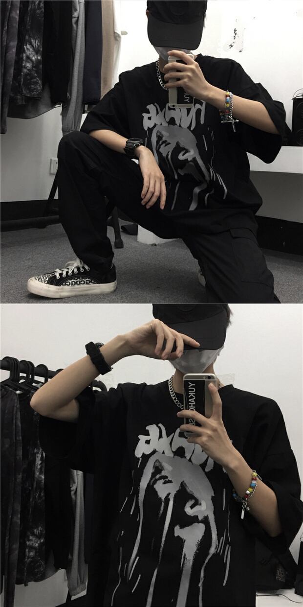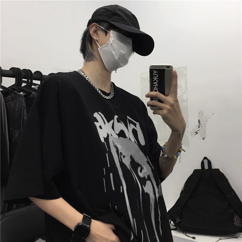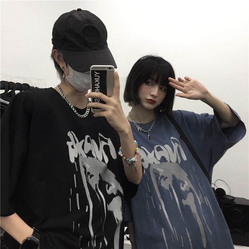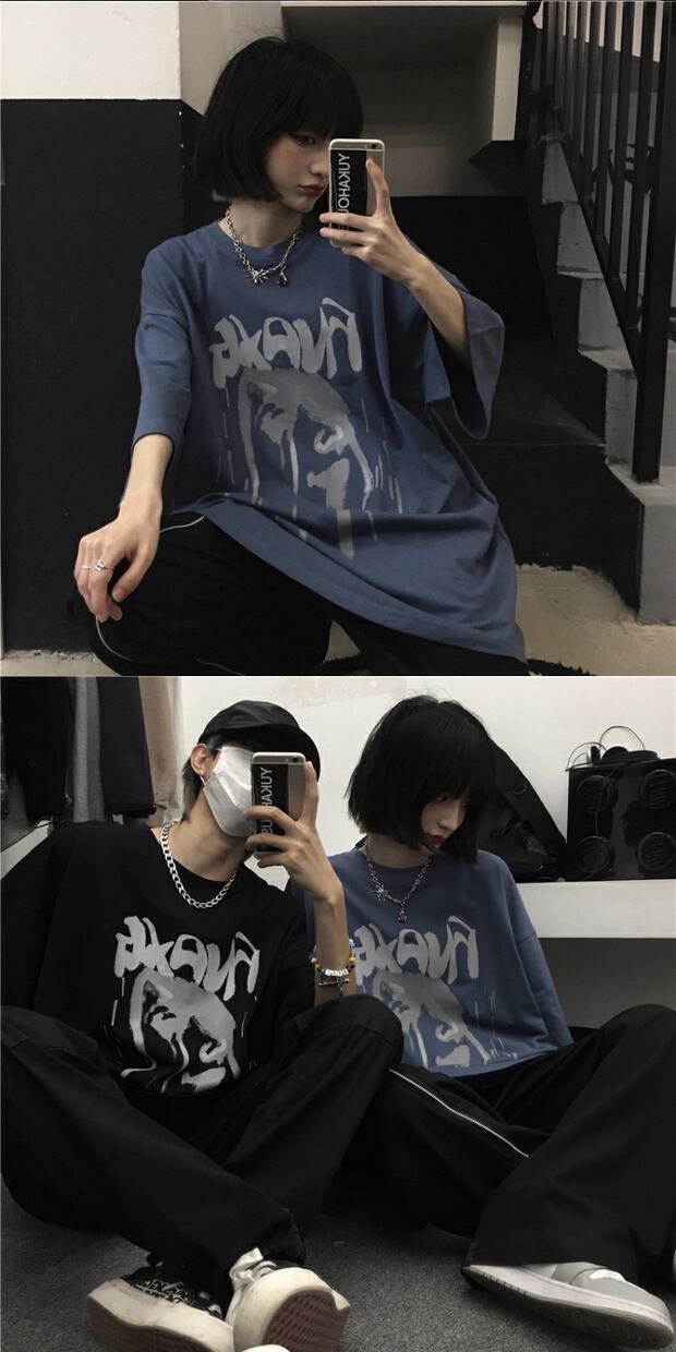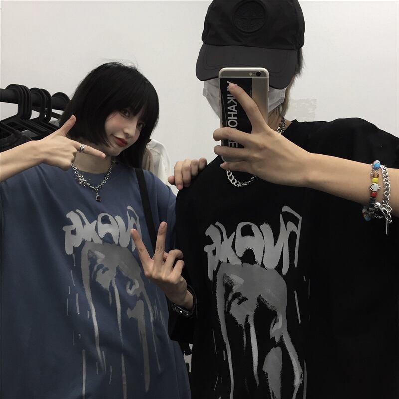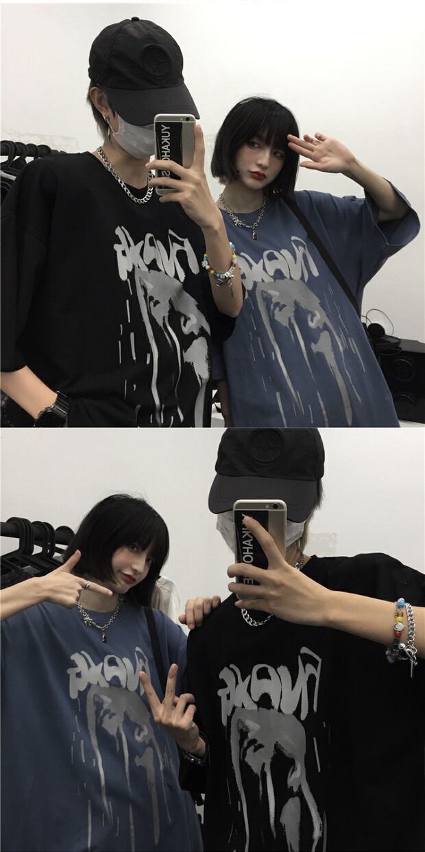 ダークカジュアルTシャツ スタイルプリント柄トップス レディースショート 半袖 ハーフスリーブ ストリート 大きめサイズ かわいい ケッペル51015039331