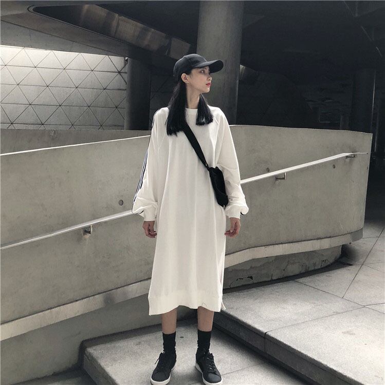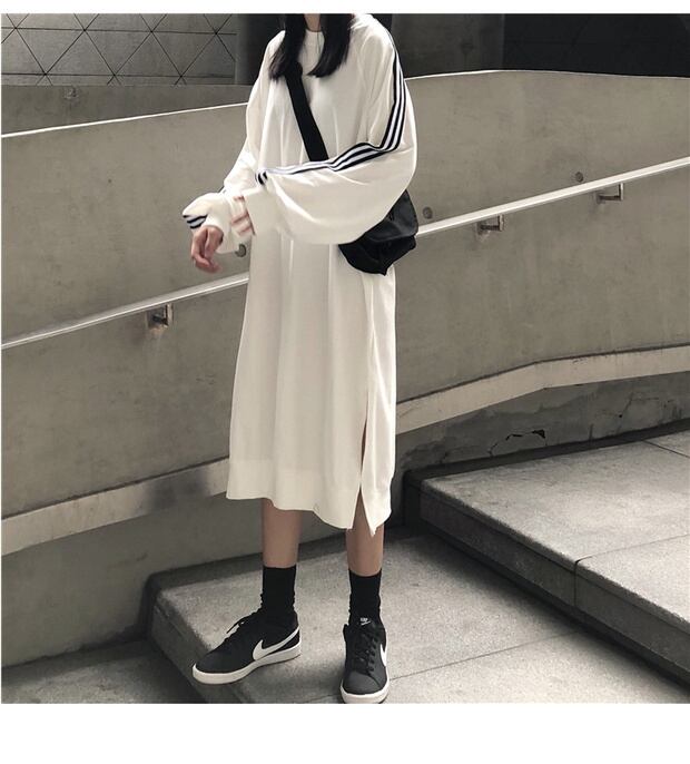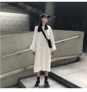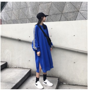 ロングスカート ルーズ薄手サイドスリットプルオーバー セーター ドレス ケッペル50874175197