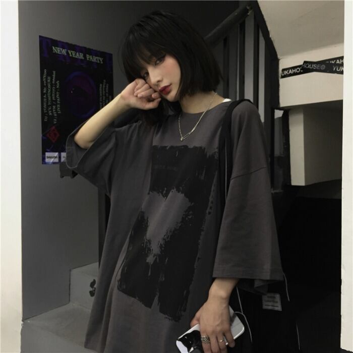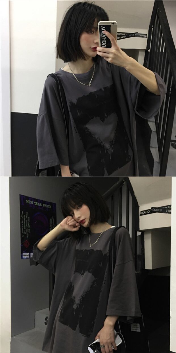 ダークサマーレディーススタイルプリントTシャツ ルーズトップス 大きめサイズ かわいい 夏物 ケッペル64893514224