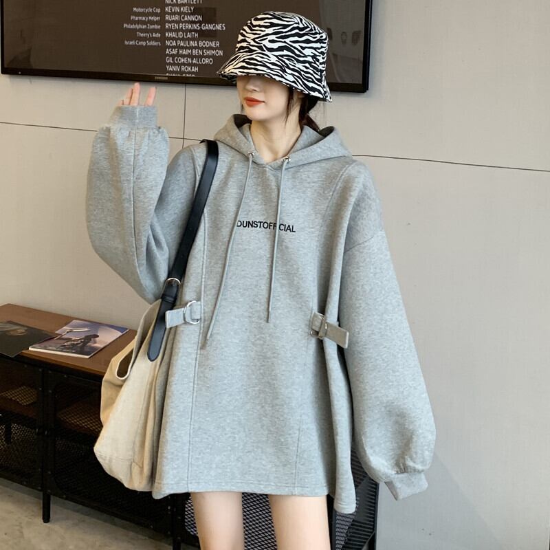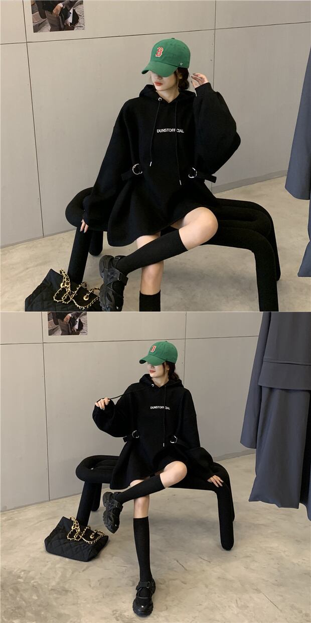 ルーズカジュアルジャケット レディーススタイルフード刺繍ウェストベルベットセーター ロング ケッペル55977771909