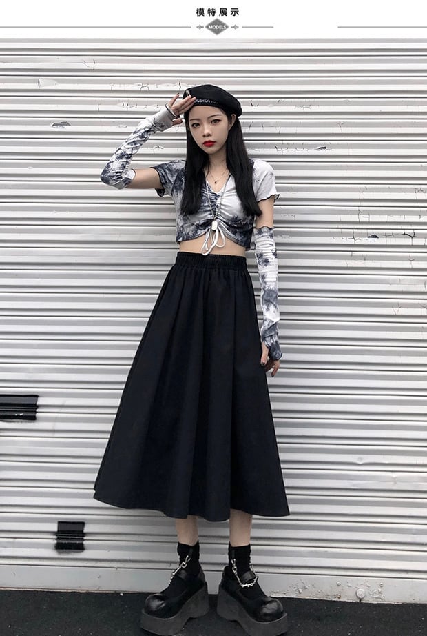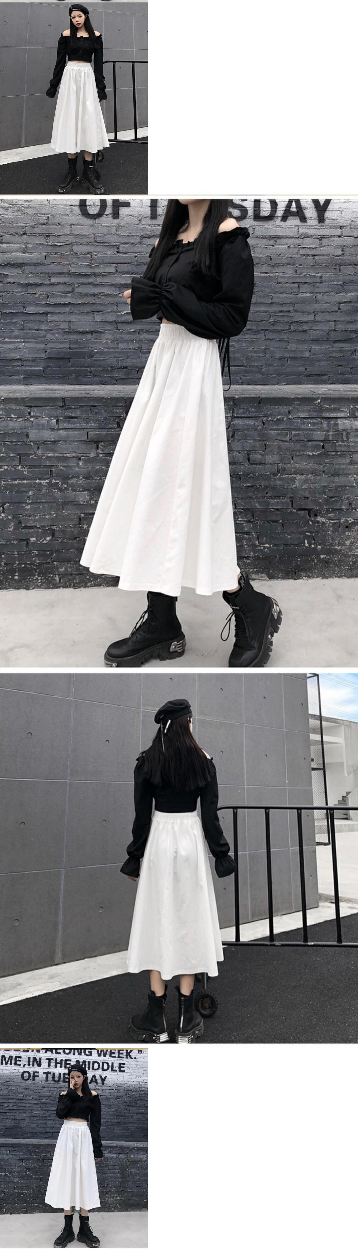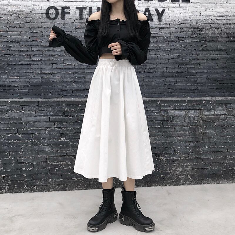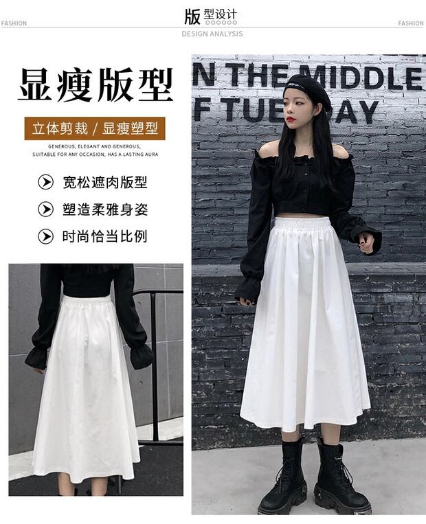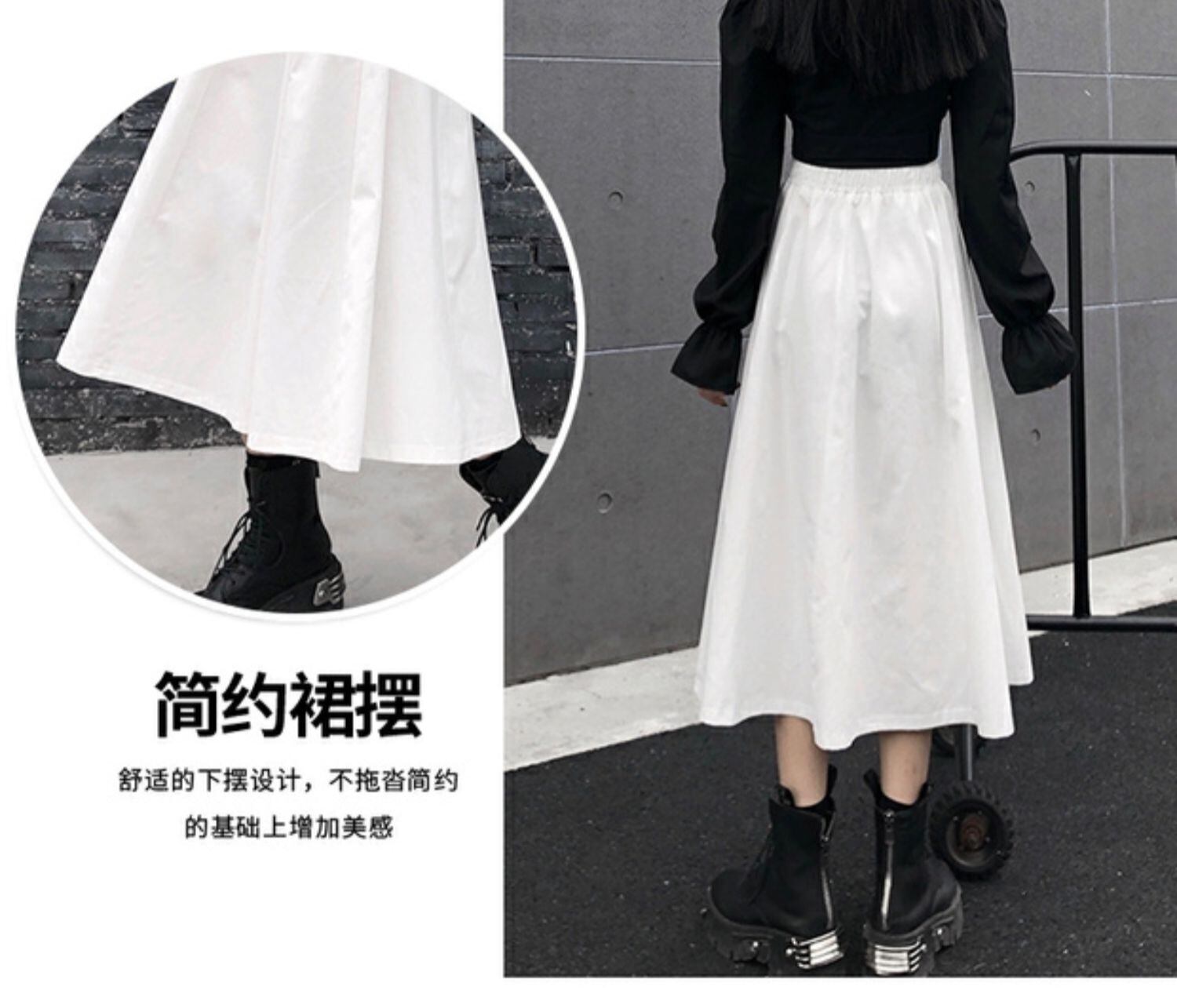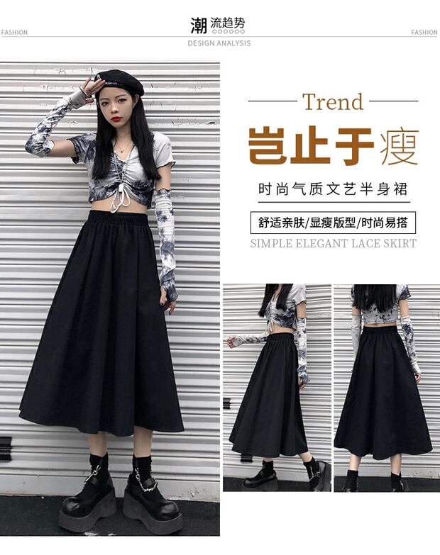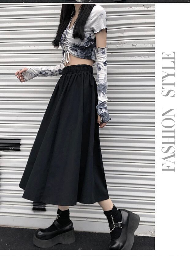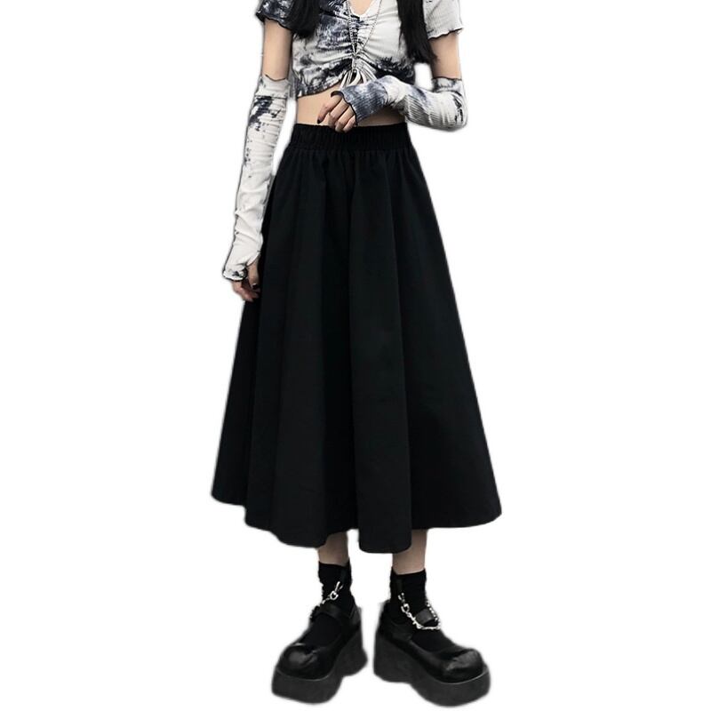 カジュアルAラインスカート スプリングダークブラックハイウェスト薄手ルーズロング 春物 ケッペル7340126198