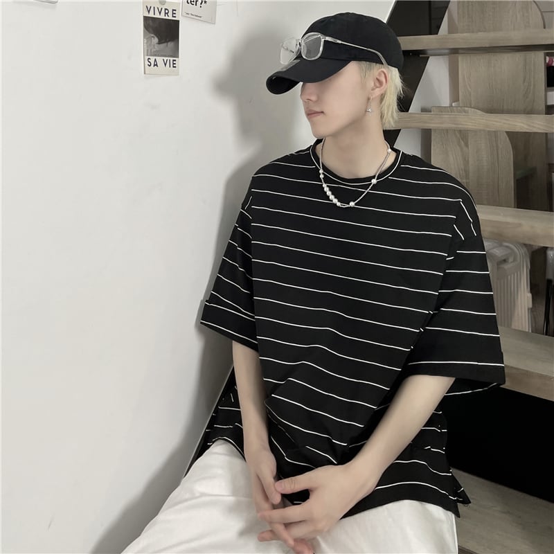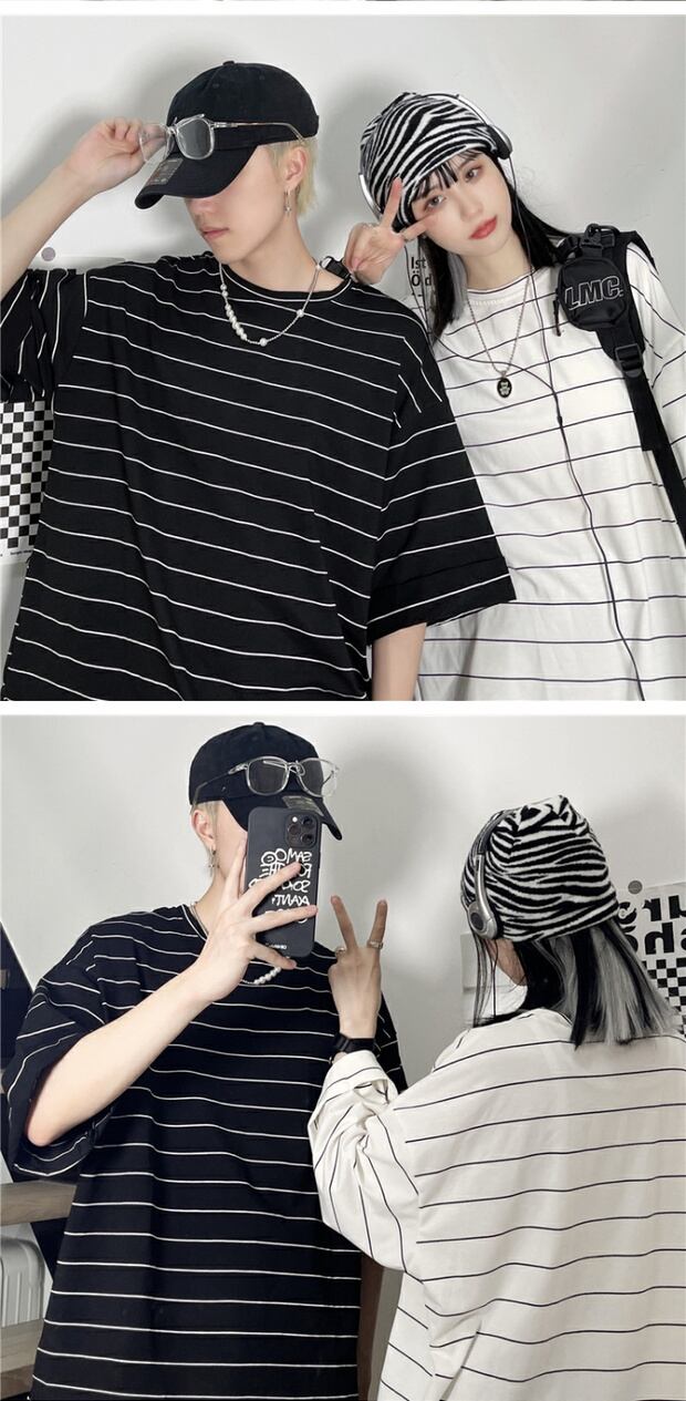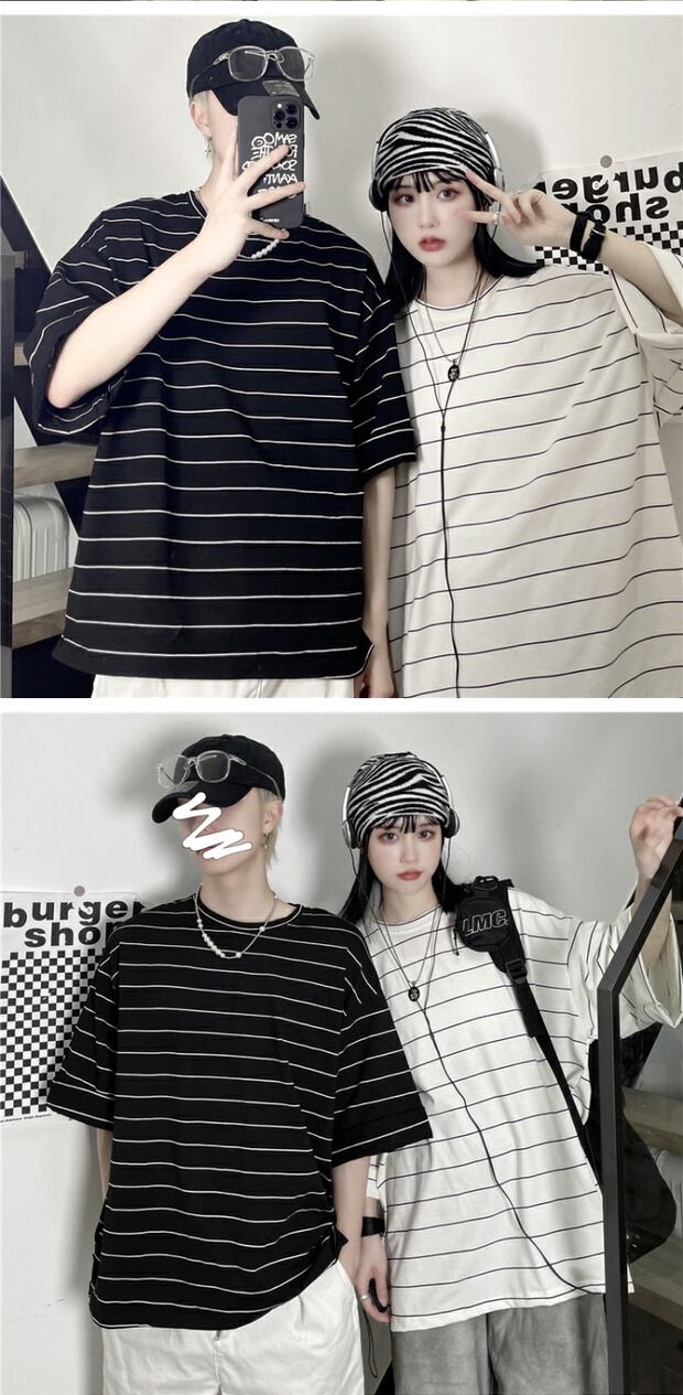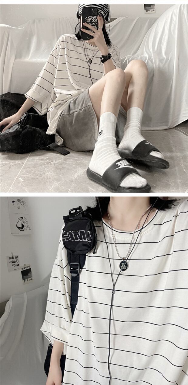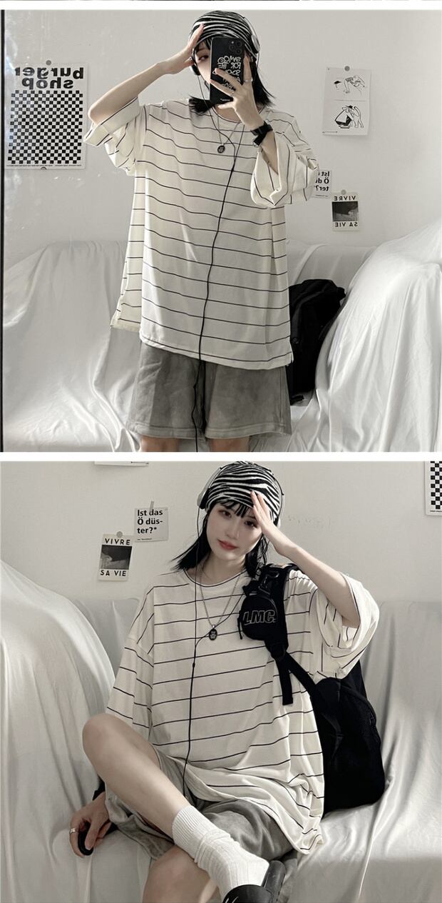 サマーカジュアルシャツ レディーススタンダードルーズストライプTシャツ レトロ 夏物 ケッペル34594077402