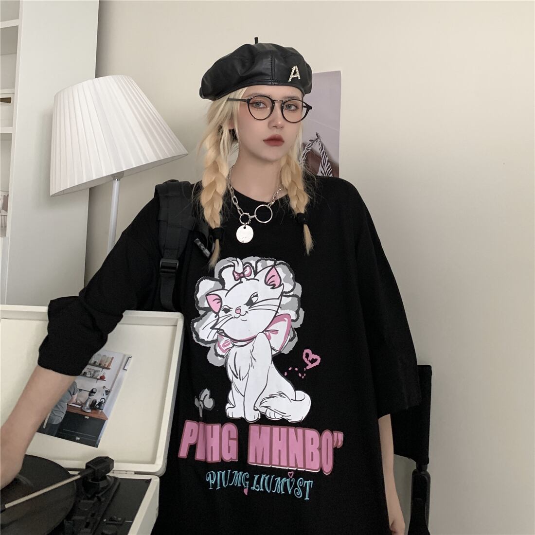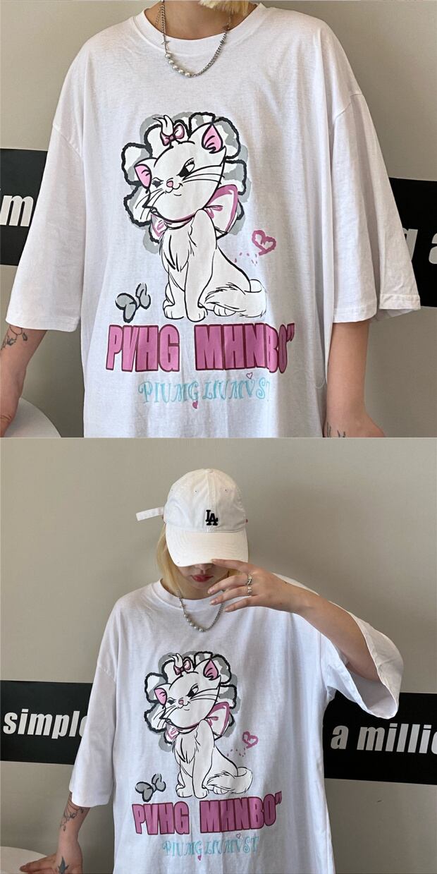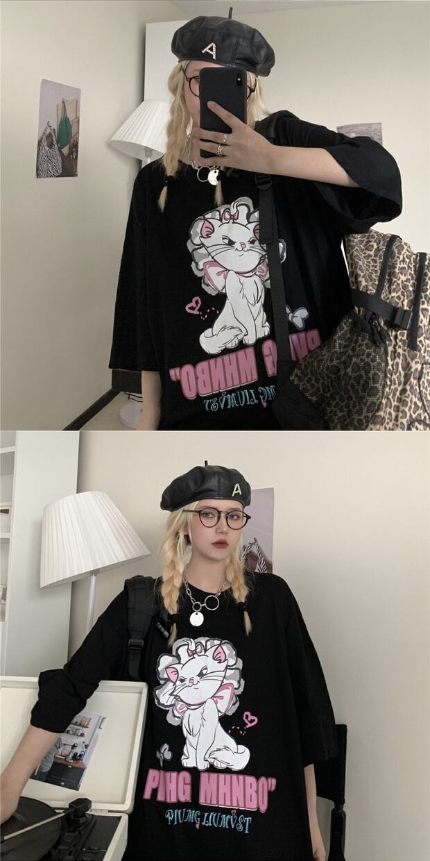 スタイルサマールーズプリント柄カジュアルTシャツ レディーストップス ストリート 大きめサイズ 夏物 ケッペル5102594848
