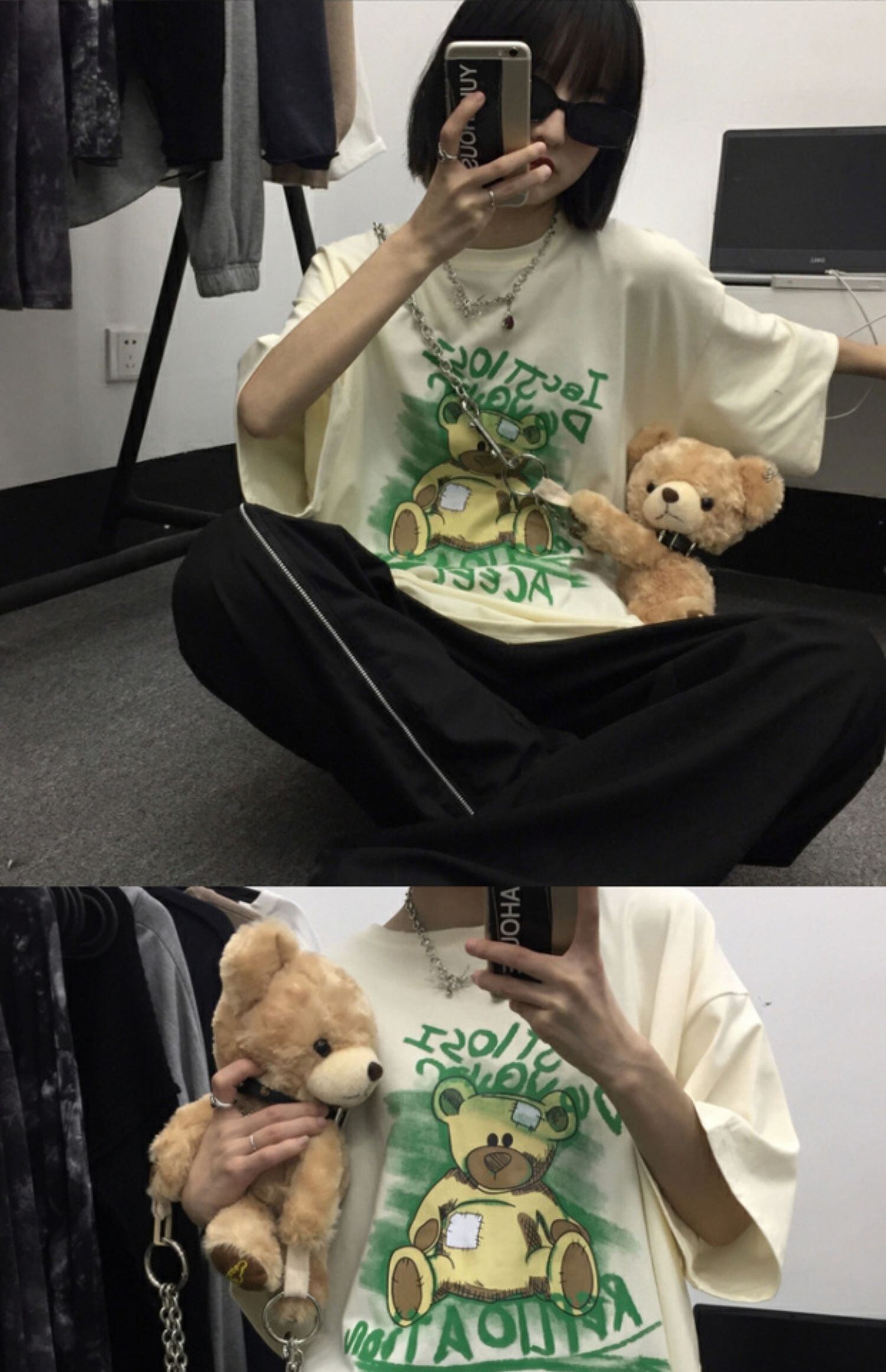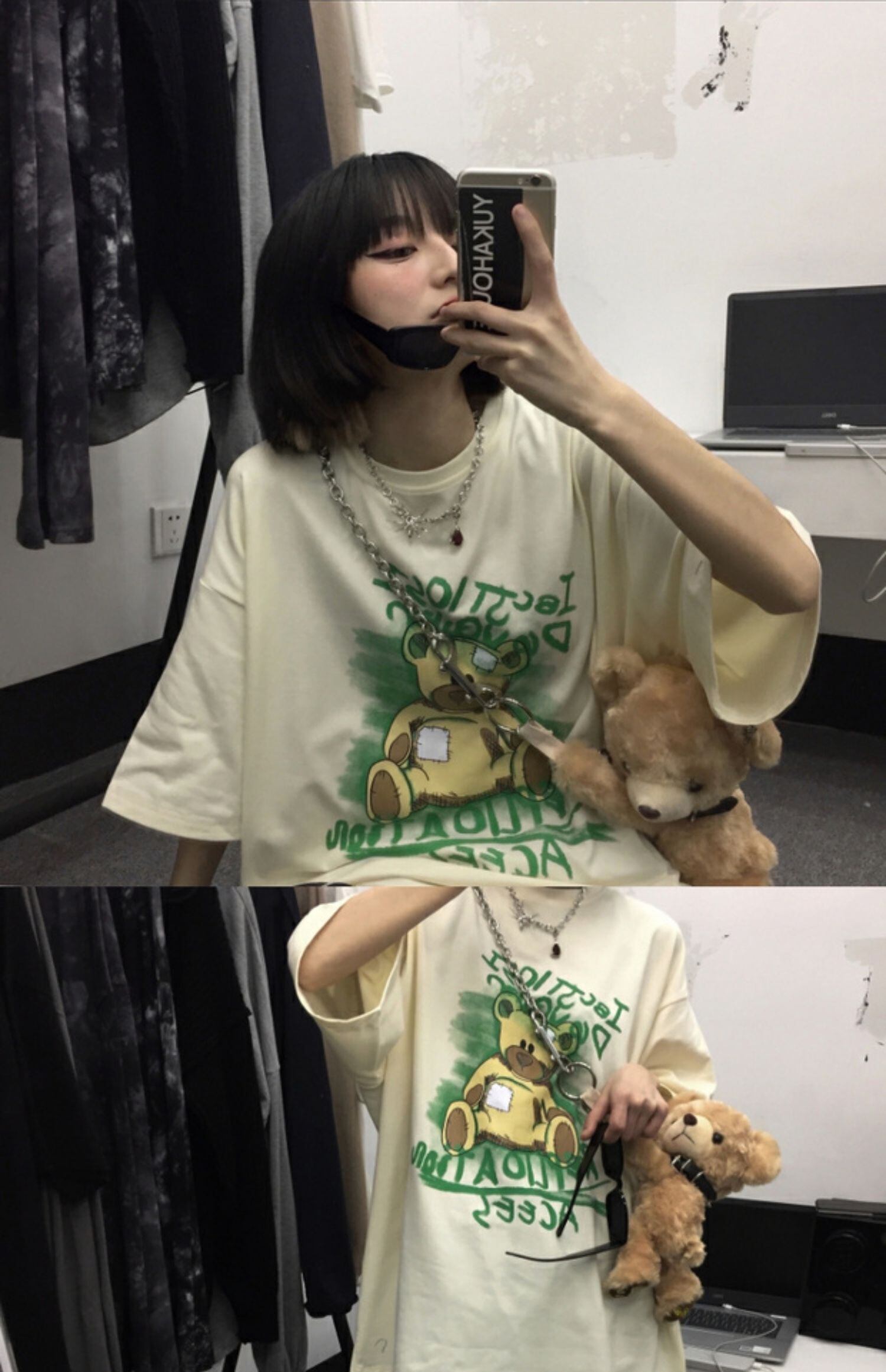 スタイルカジュアルシャツ プリント柄Tシャツ ルーズ かわいい ケッペル73872083001