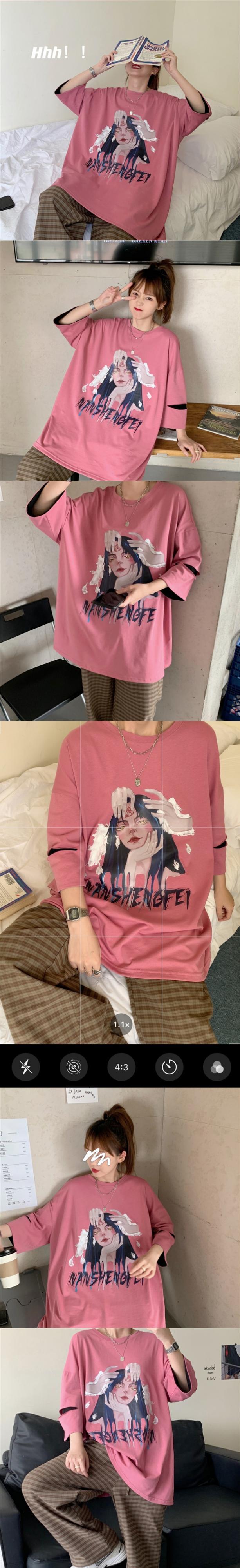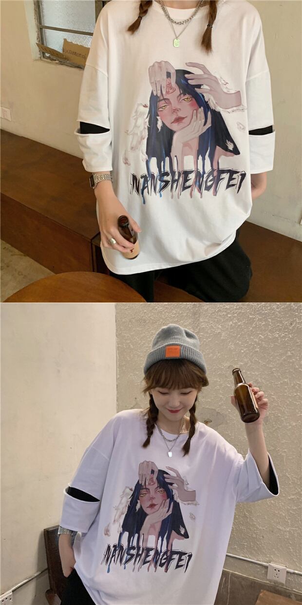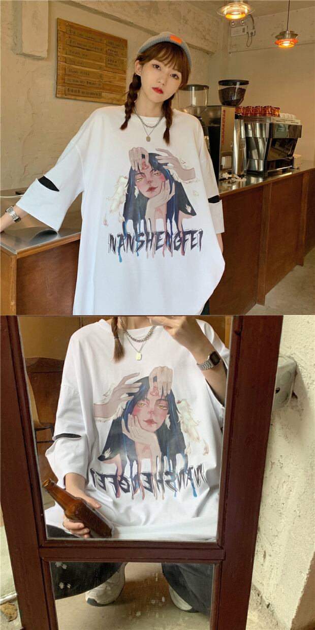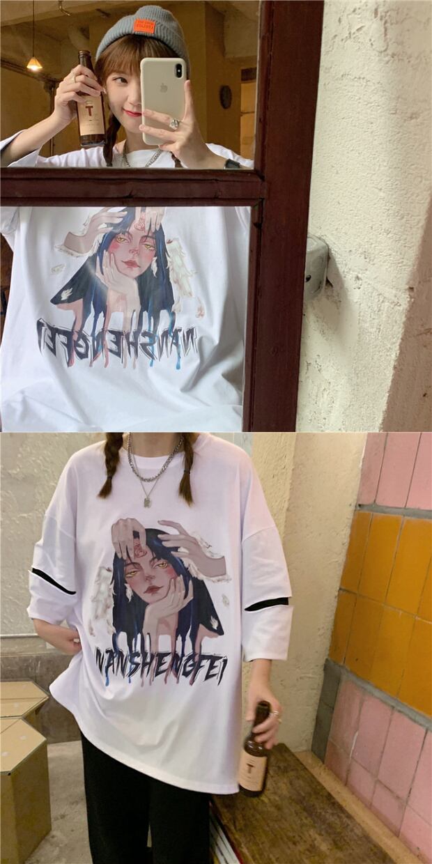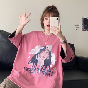 サマープリントTシャツ レディースルーズライントップス 夏物 ケッペル46222256166