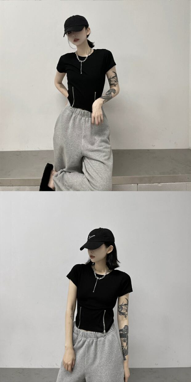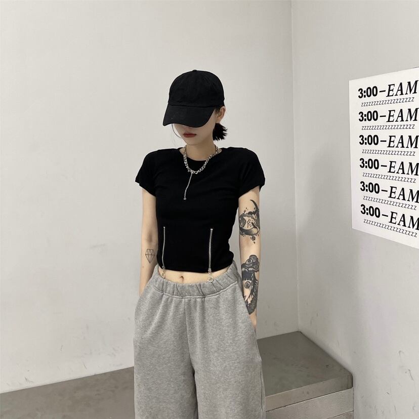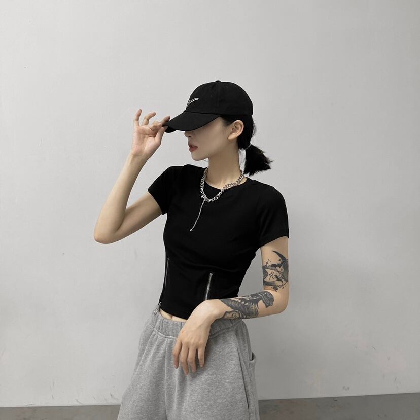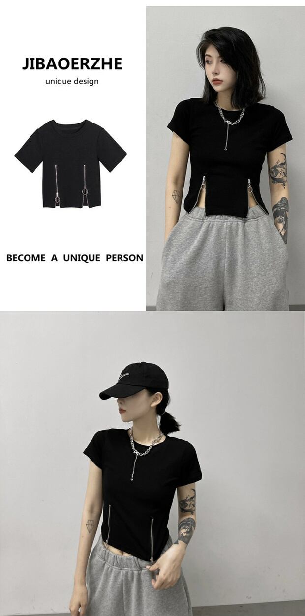 サマーショートクロップドTシャツ スタイルカジュアルラウンドネック 夏物 Oネック ケッペル38605887177