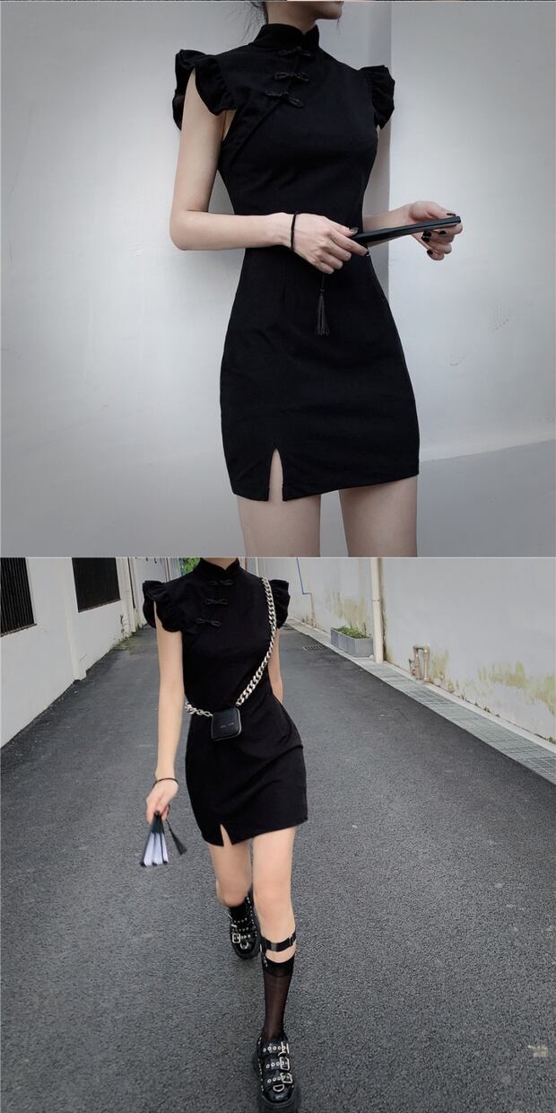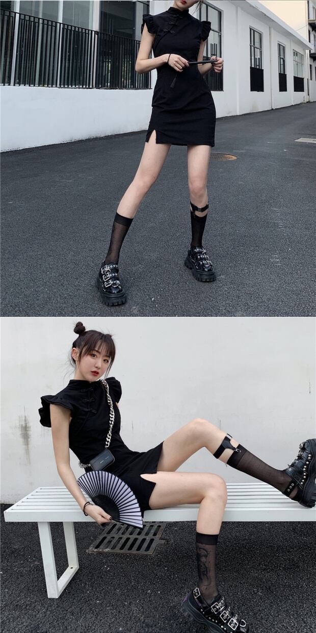 自然派スタイルサマースタンダードスカート ブラックウェストバックルワンピース レトロ 夏物 ケッペル55703721459