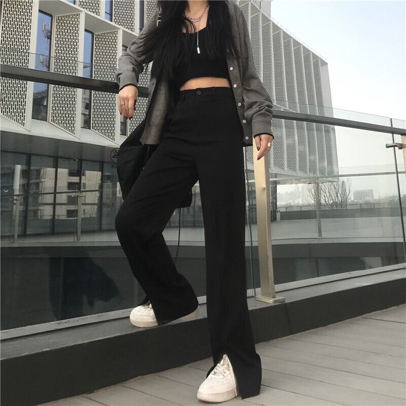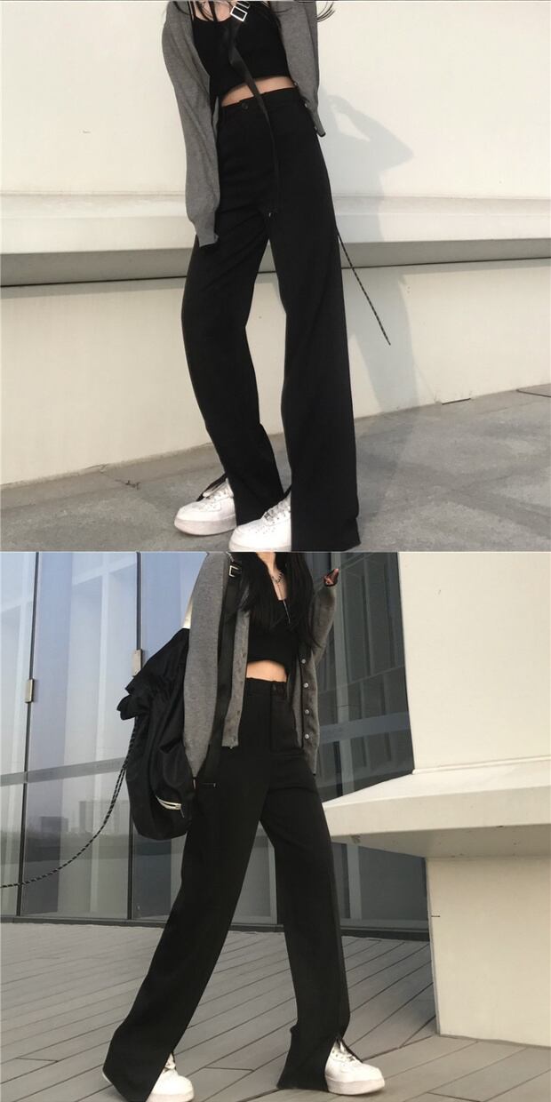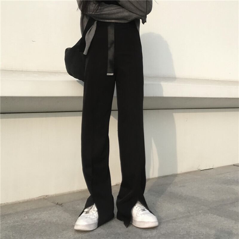スプリングカジュアルスリットパンツ ルーズハイウェストウェスト 春物 ケッペル80757758526
