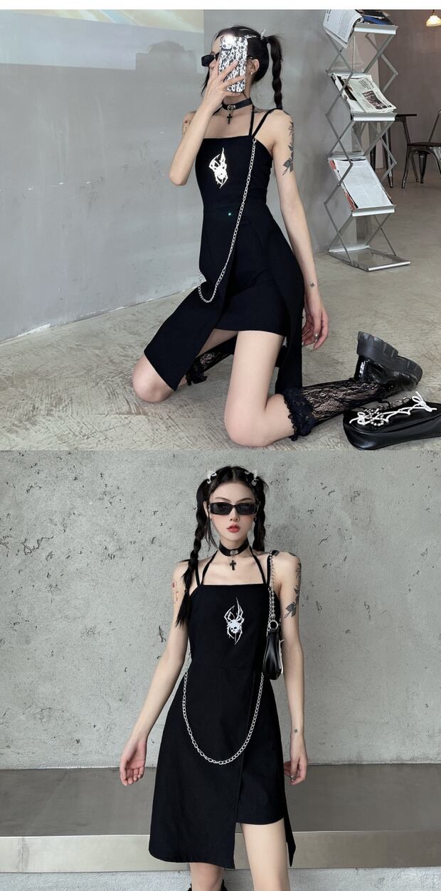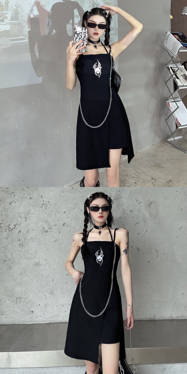 ダークサマードレス カジュアルブラック 夏物 スカート ケッペル45490552542