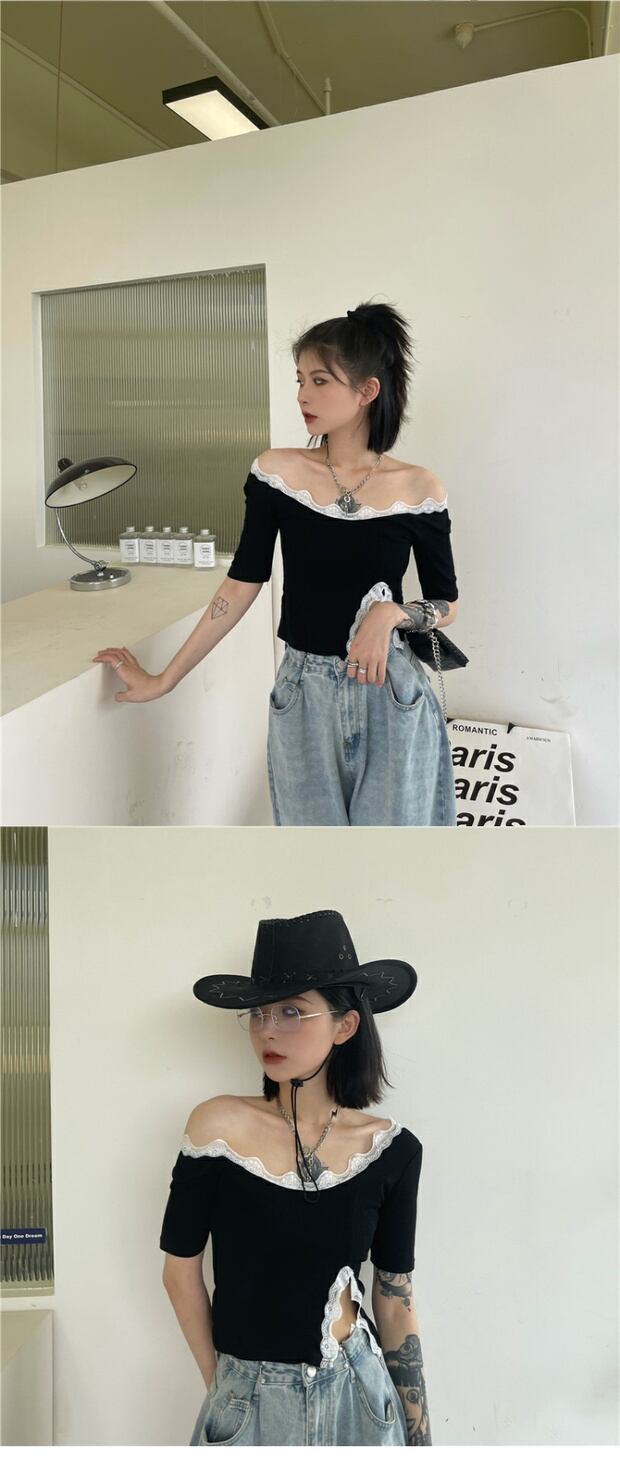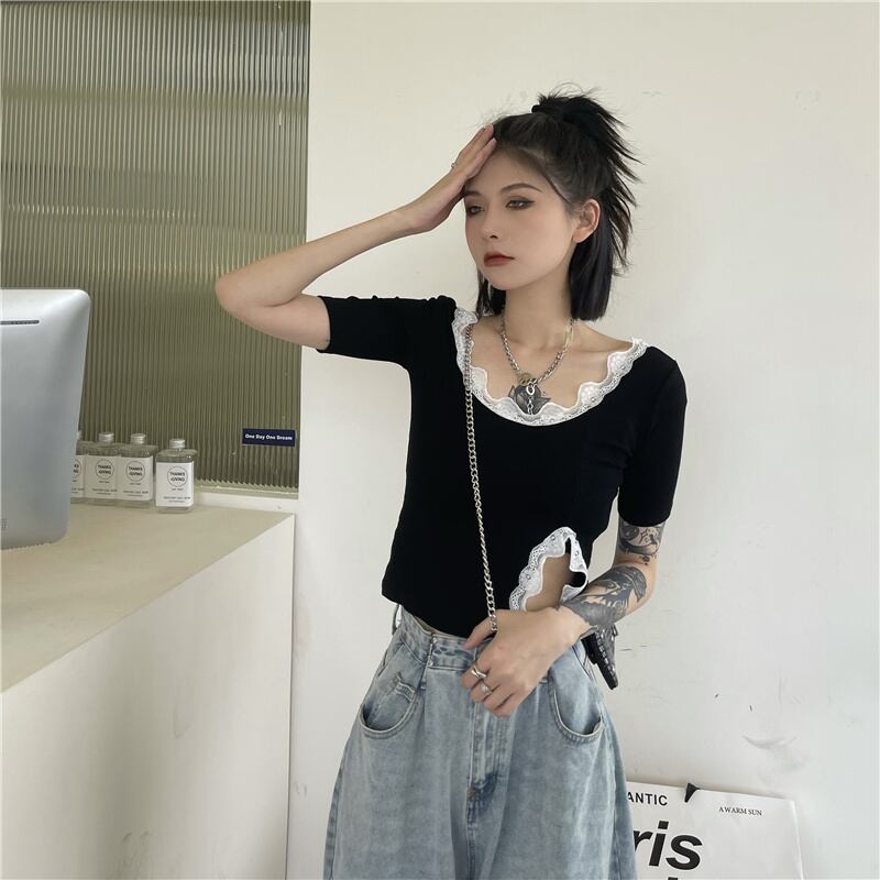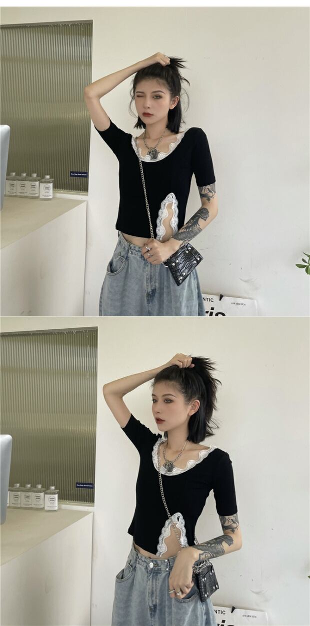 サマーレースTシャツ Vネックトップス 夏物 ケッペル56568251877