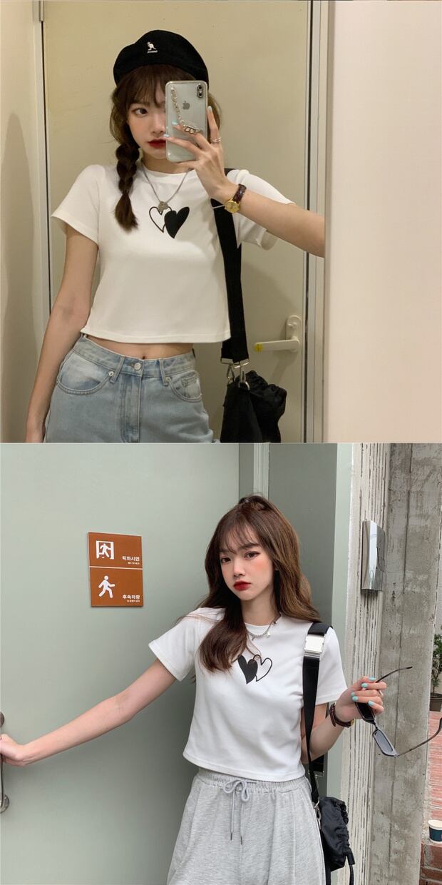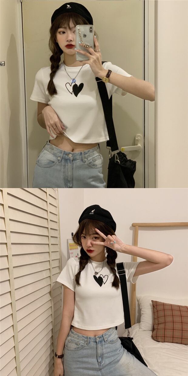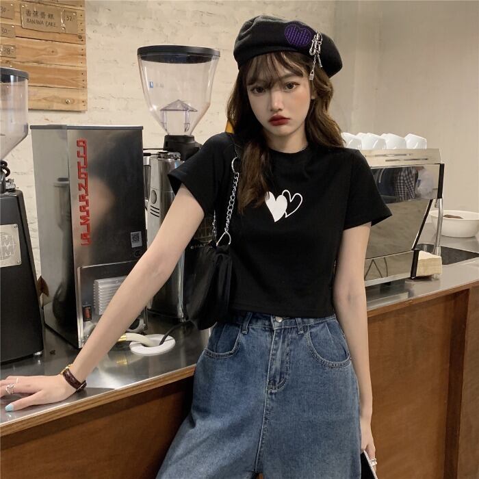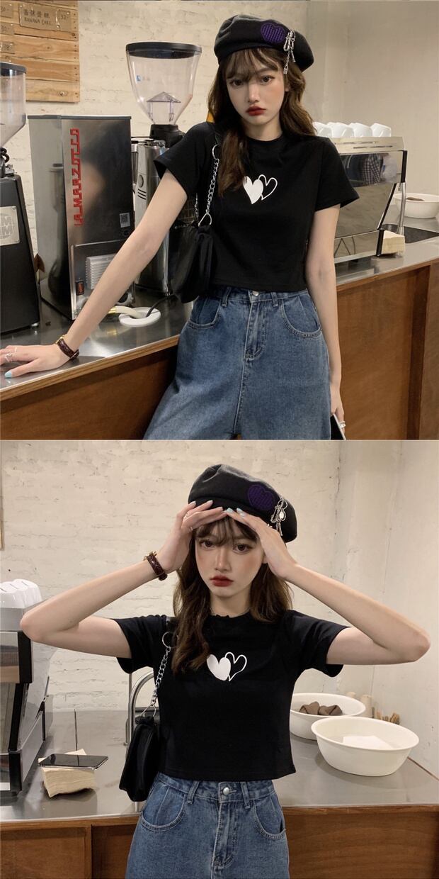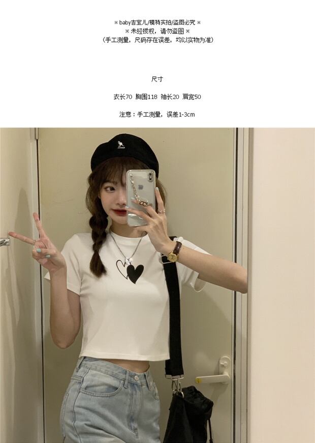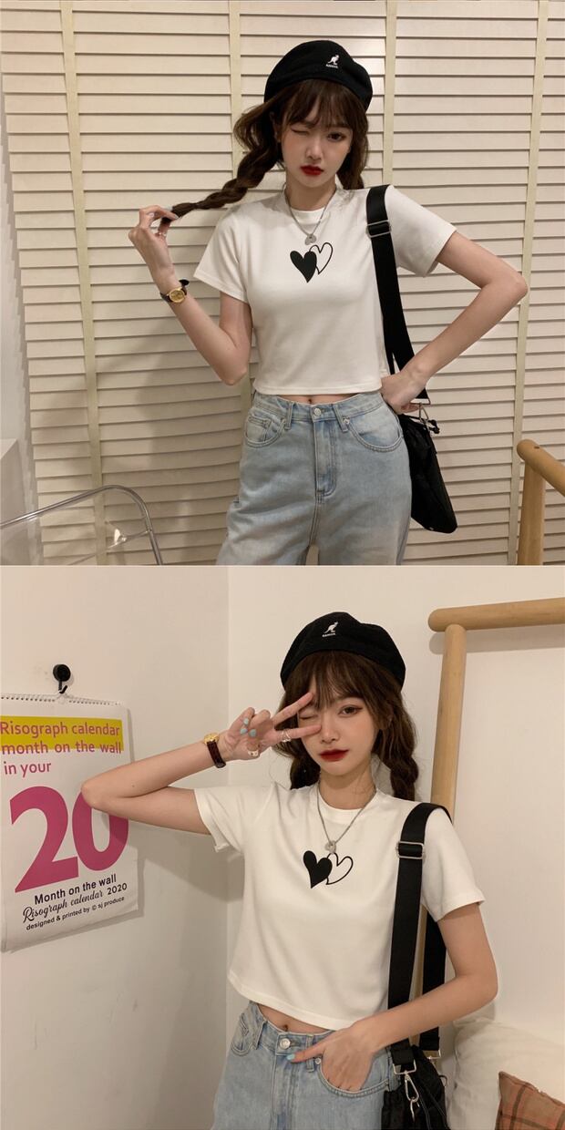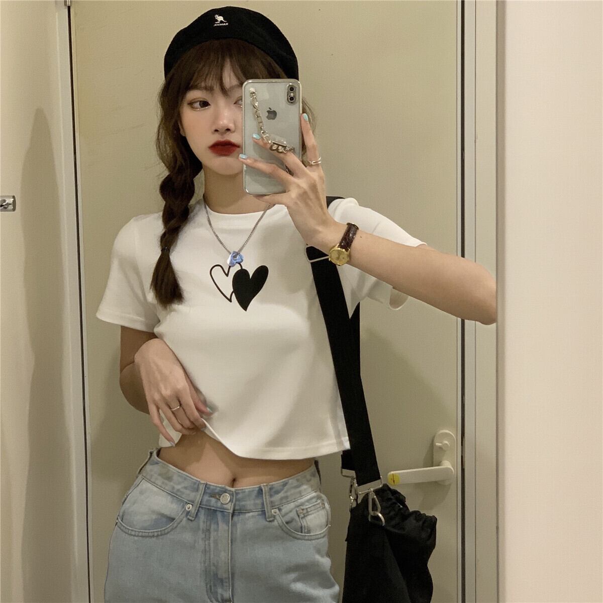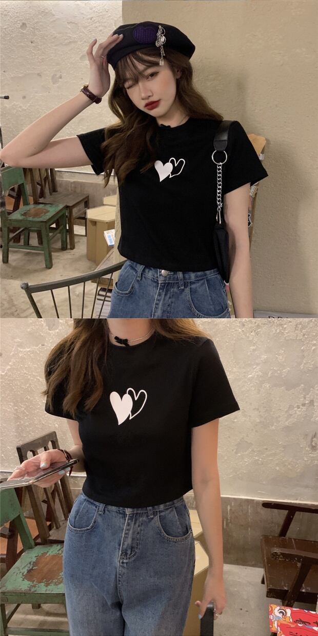 サマースリムフィットTシャツ プリントショートトップス 夏物 ケッペル25190463036