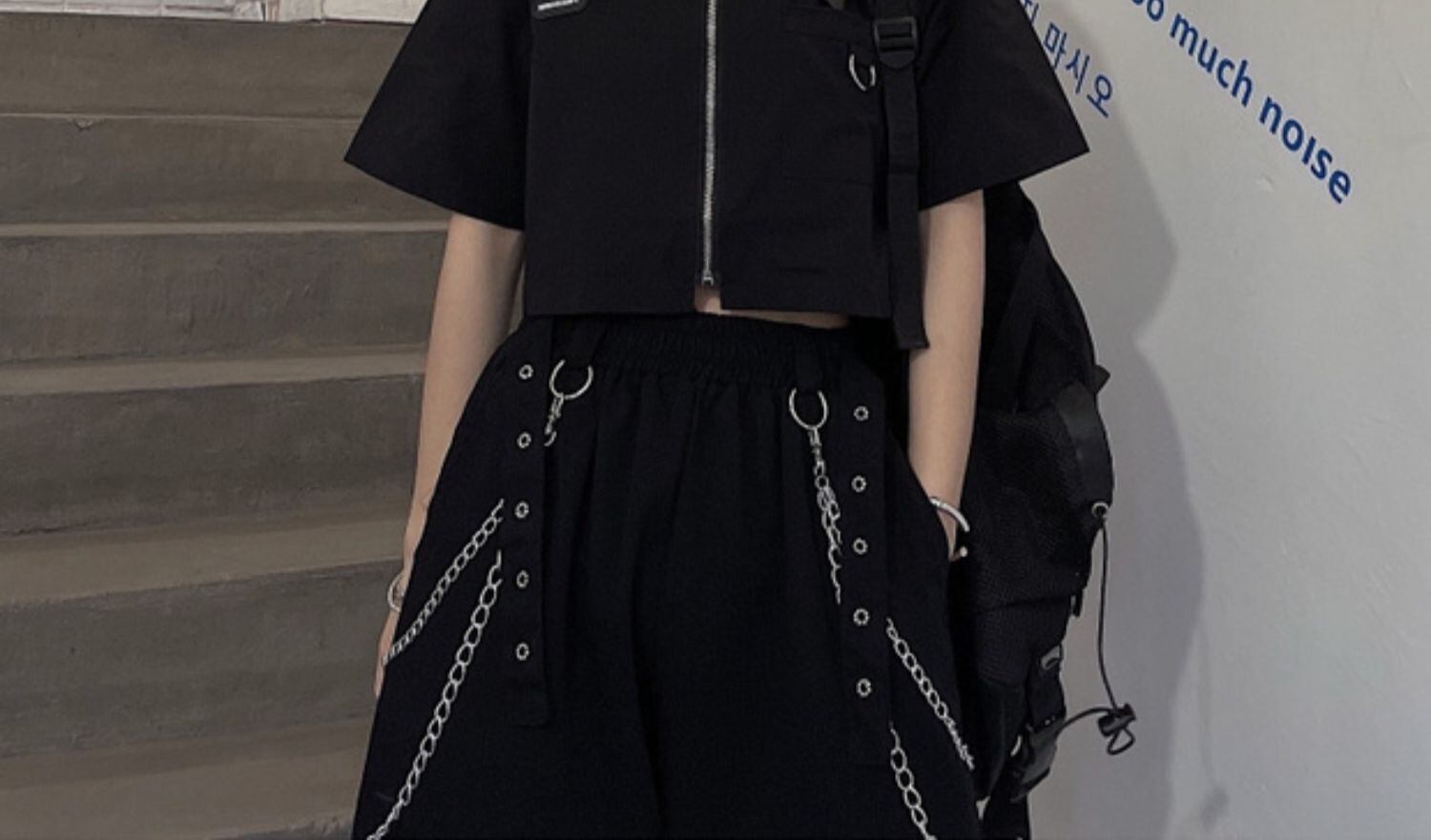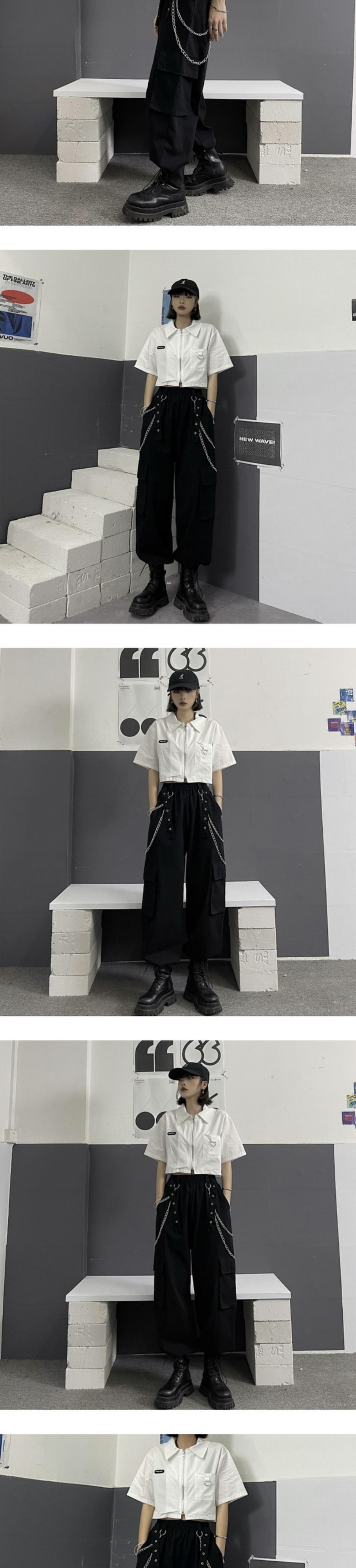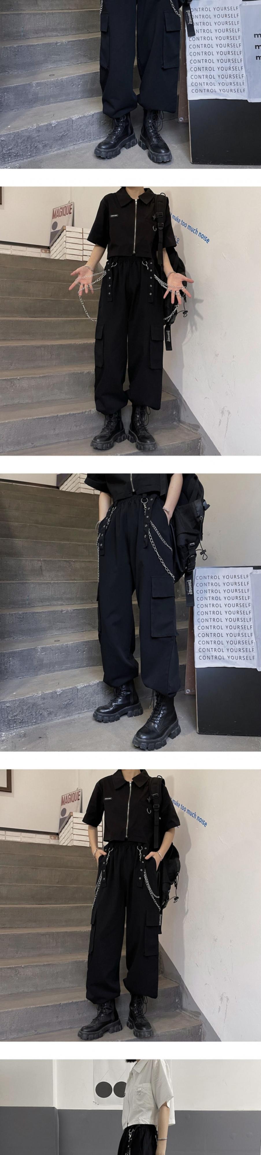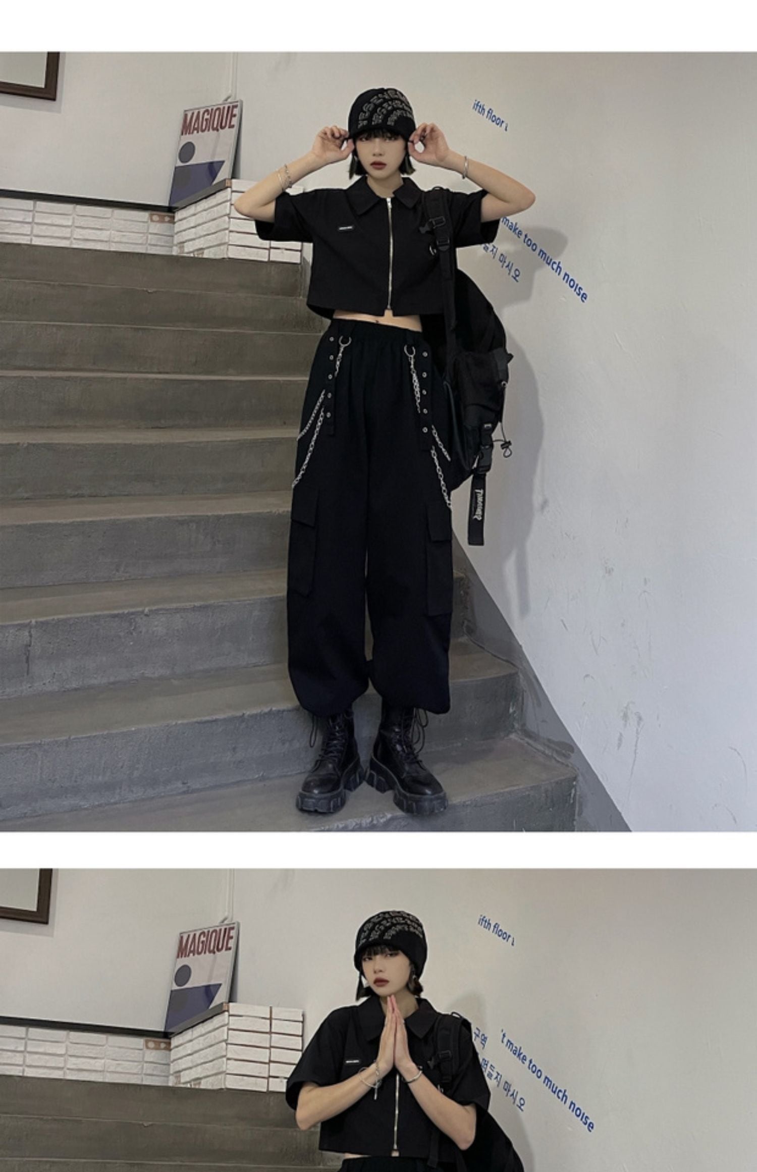 ダークスタイルカジュアルジッパーカーディガンクロップドシャツ ストリート ケッペル75827785092