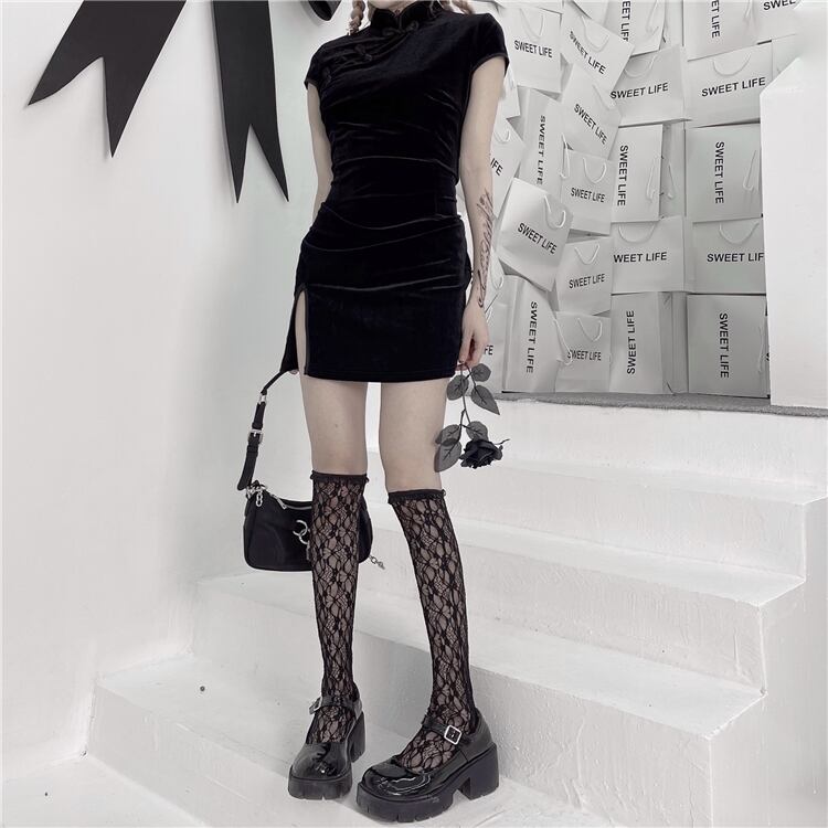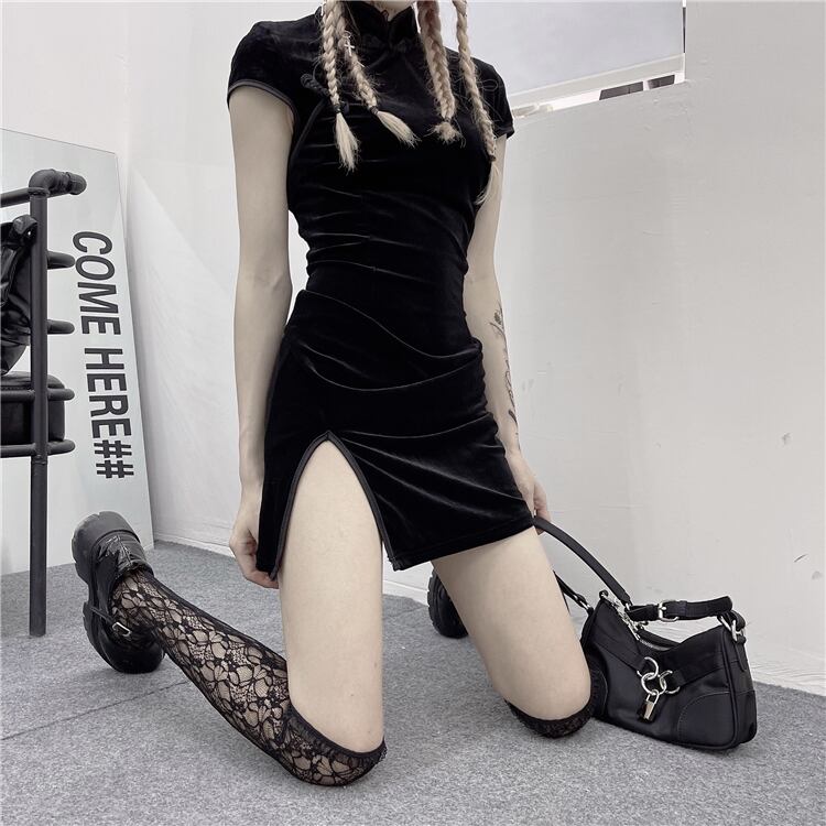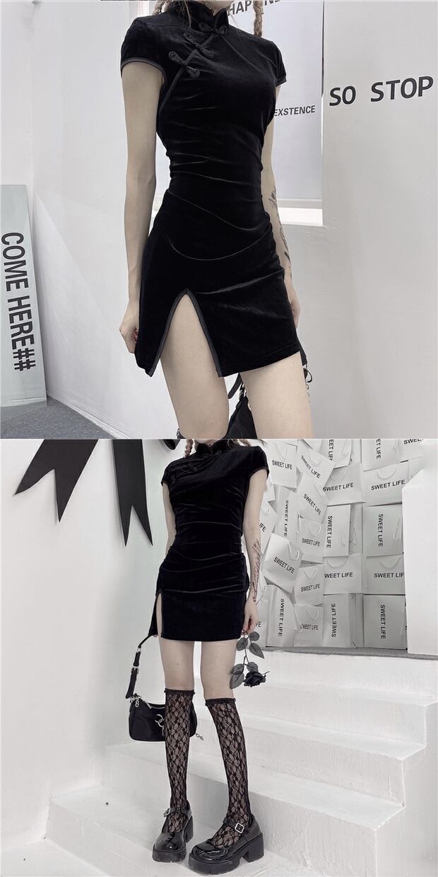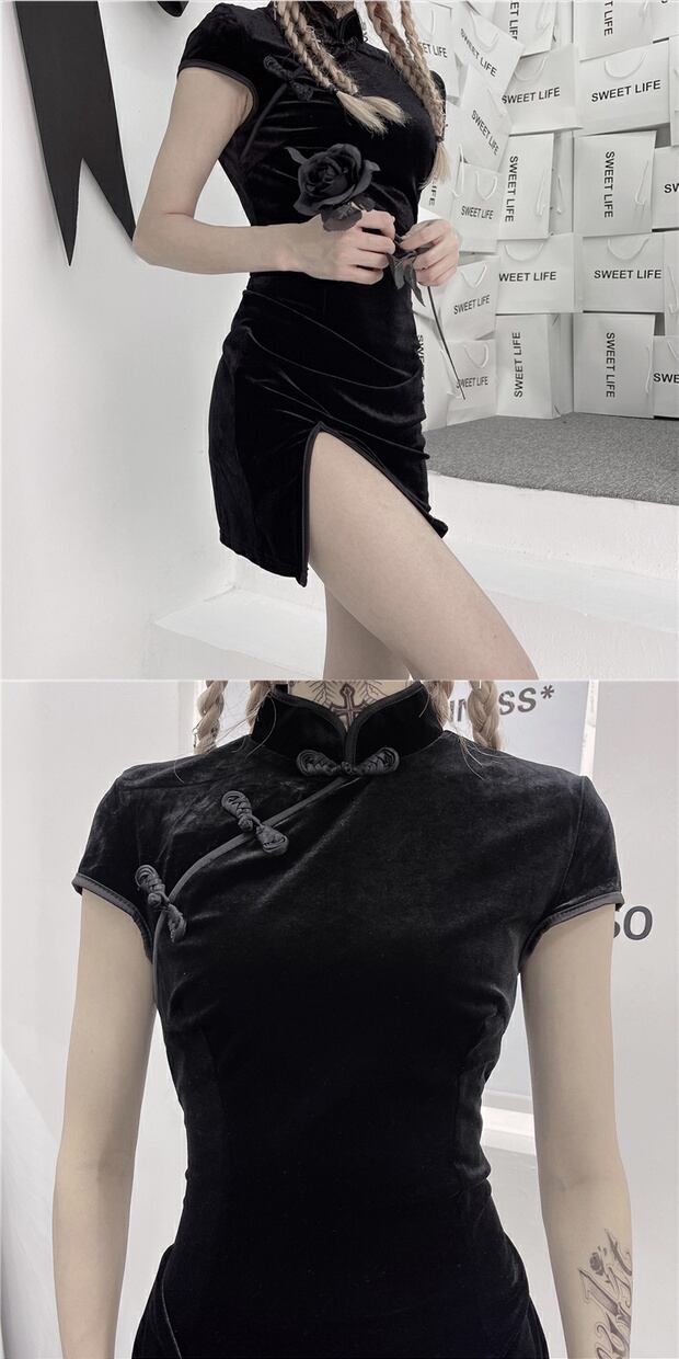 自然派スタイルショートスカート レッドスリムドレス スタンダードスタンドカラーカラー レトロ ケッペル73057862751