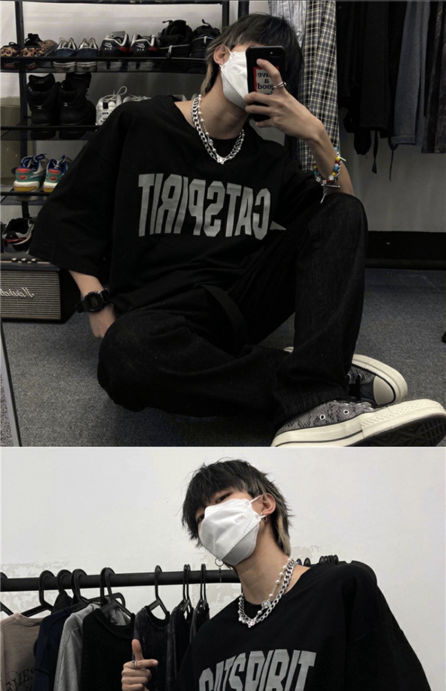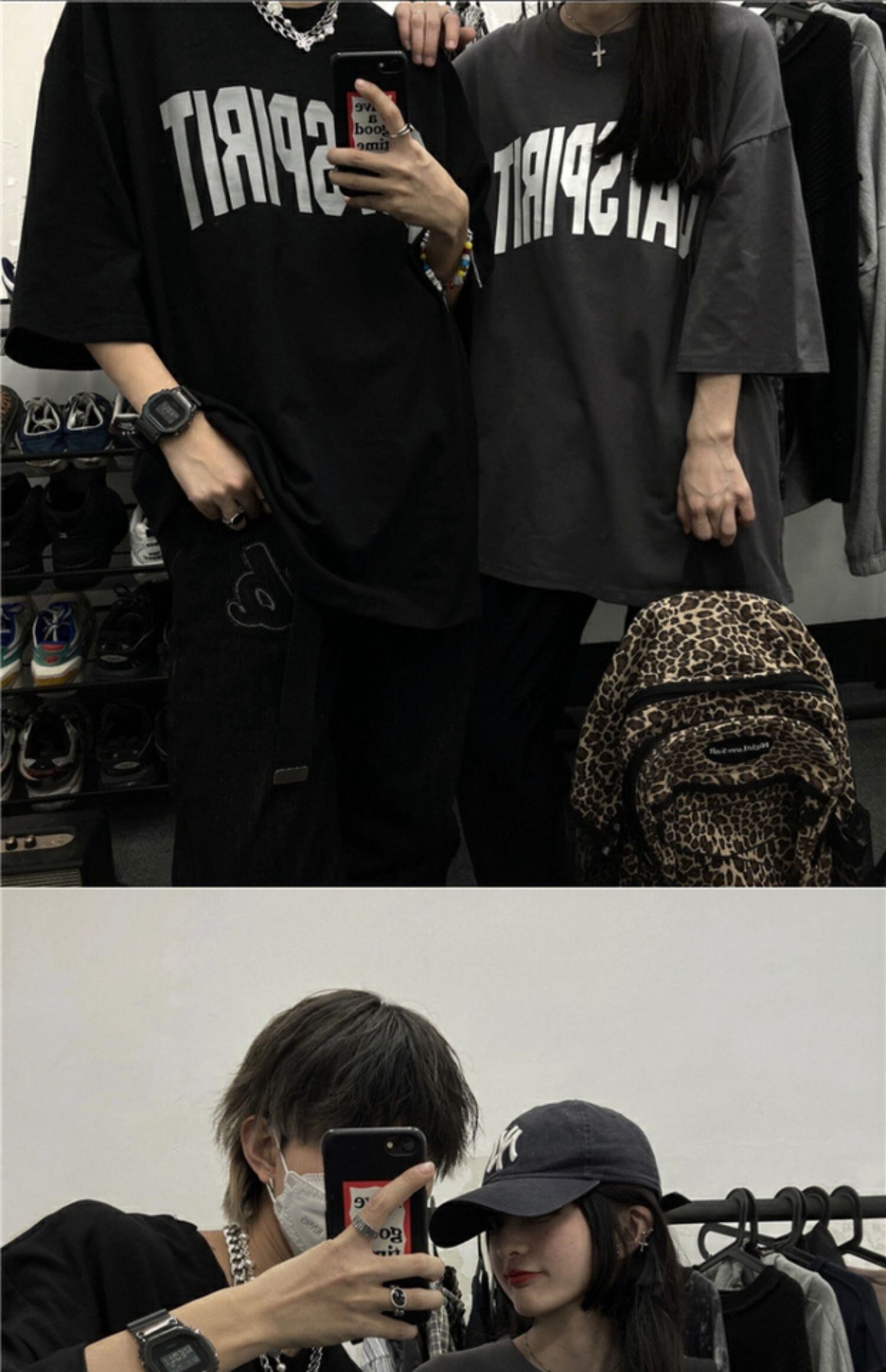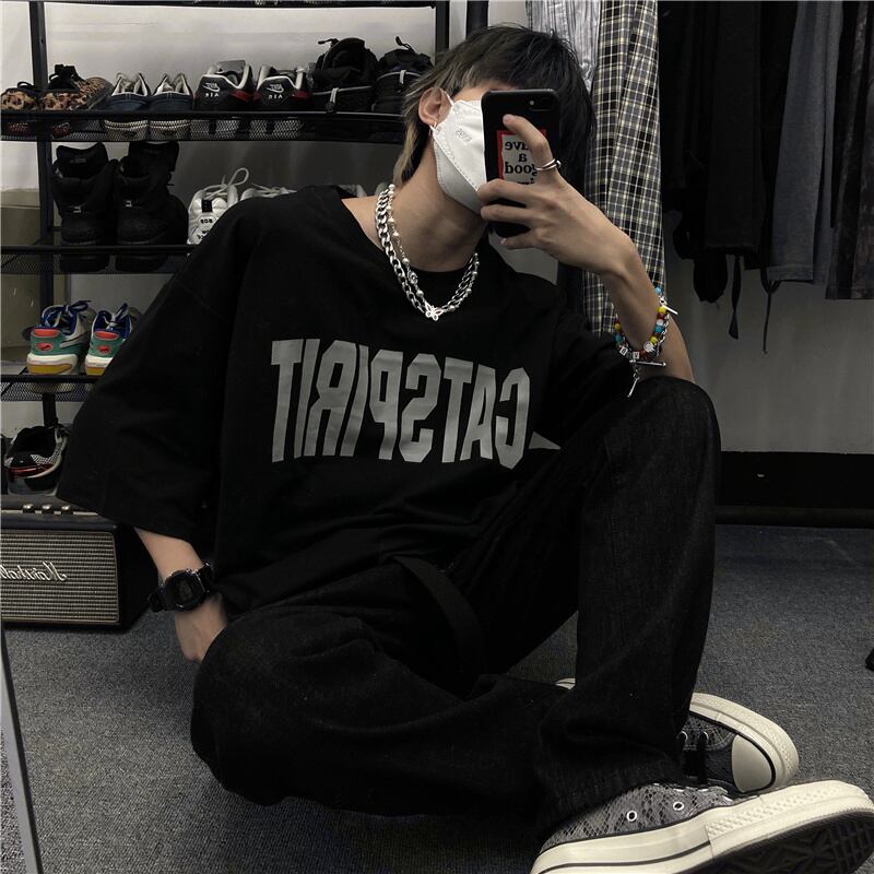 Tシャツ サマーダークプリントルーズ半袖スリーブ ショート ハーフスリーブ ストリート 大きめサイズ かわいい 夏物 ケッペル87165394630