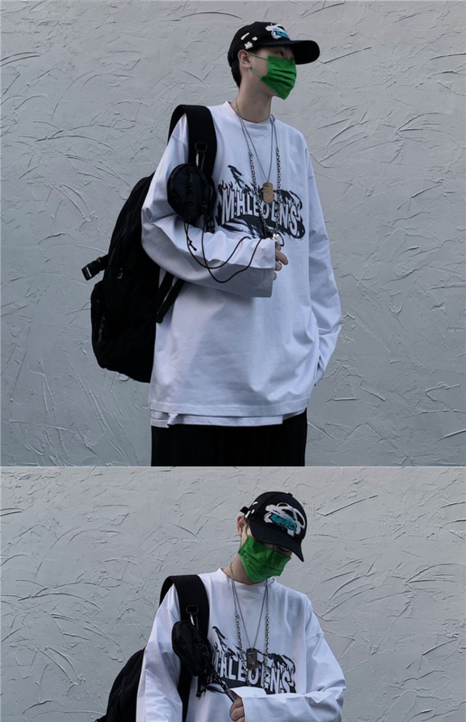 ダークTシャツ シャツ スタンダードプリントルーズカジュアルレディース ロング レトロ ケッペル8830224208