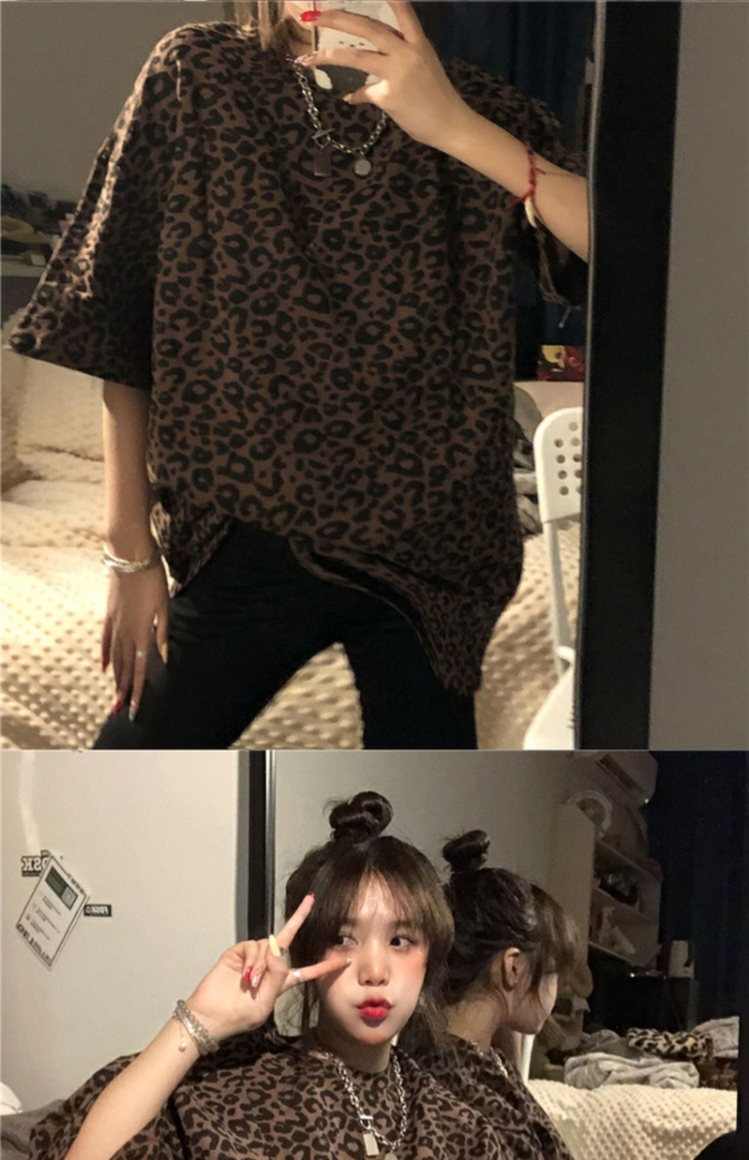 ルーズスプリングサマースタイルレオパードプリント柄Tシャツ ストリート かわいい 春物 夏物 ケッペル54389336034