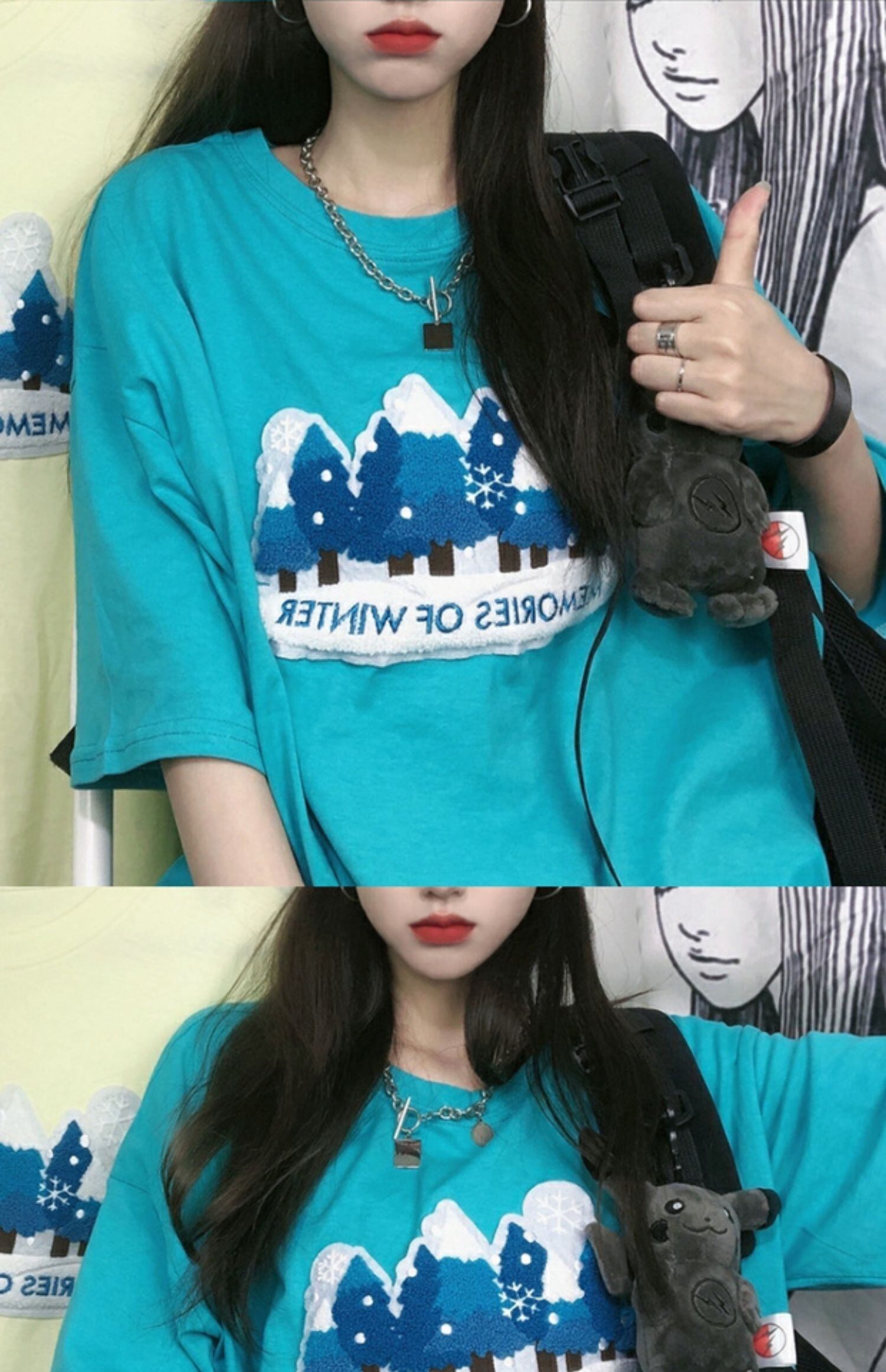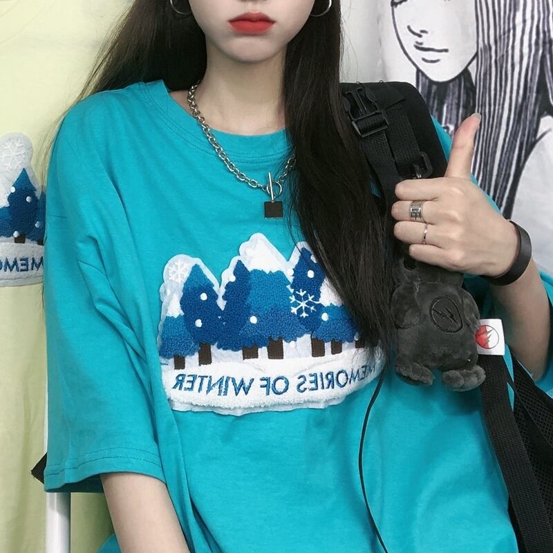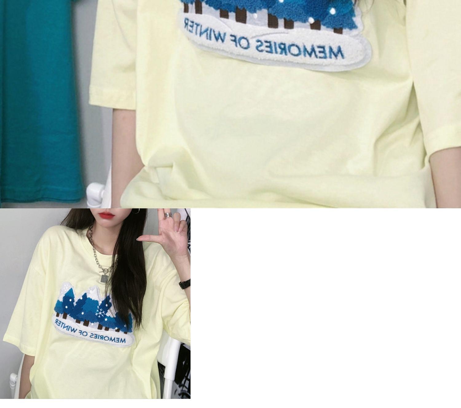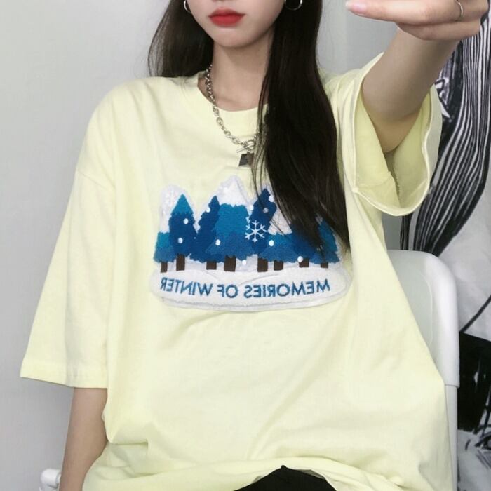 サマーロングプリント柄ルーズTシャツ スタイルラウンドネックトップス かわいい 夏物 Oネック ケッペル64857905644