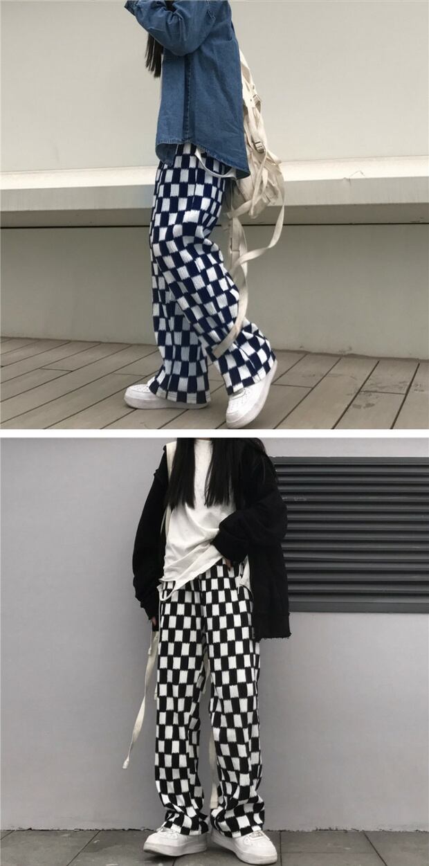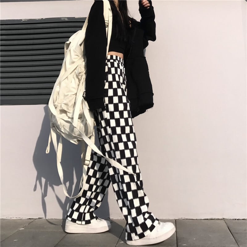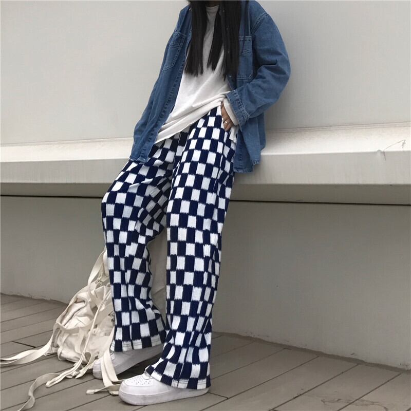 スタイルパンツ サマー格子柄ハイウェストウェストワイドレッグカジュアル レッド ストリート 夏物 ワイドパンツ ケッペル80554754153