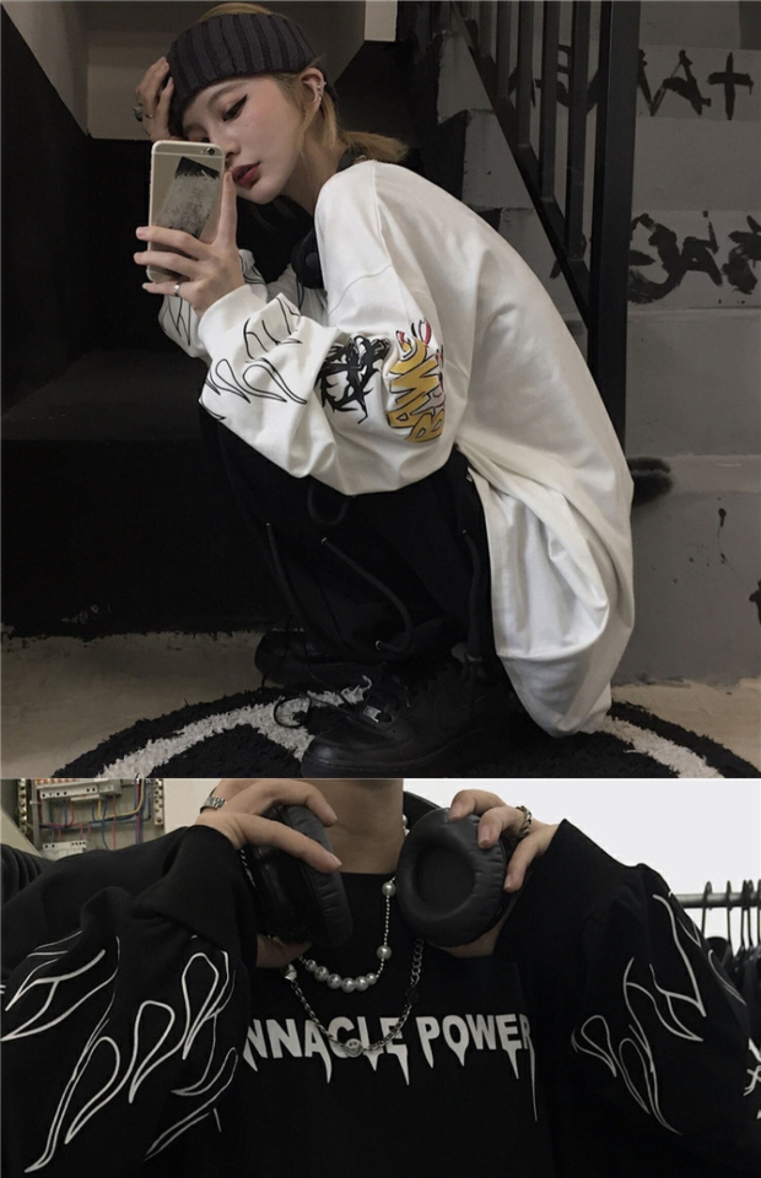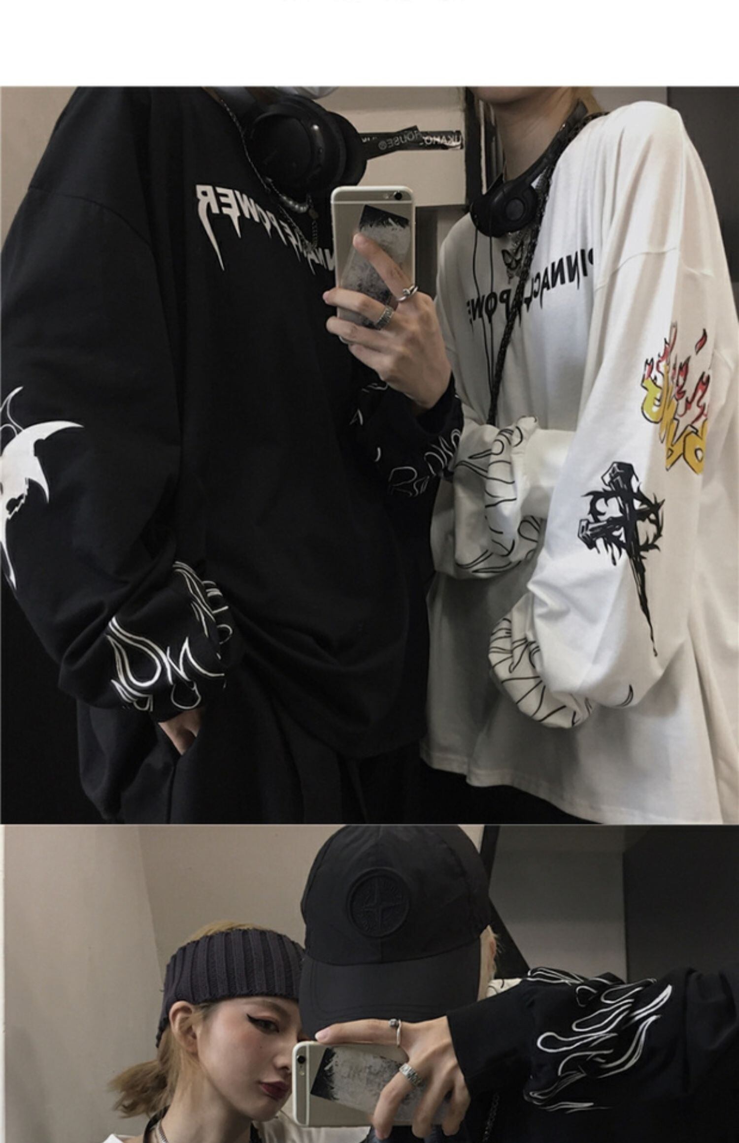 ダークルーズ長袖スリーブTシャツ スプリングプリントトップス スタイルラウンドネック ロング 大きめサイズ かわいい 春物 Oネック ケッペル49383816926