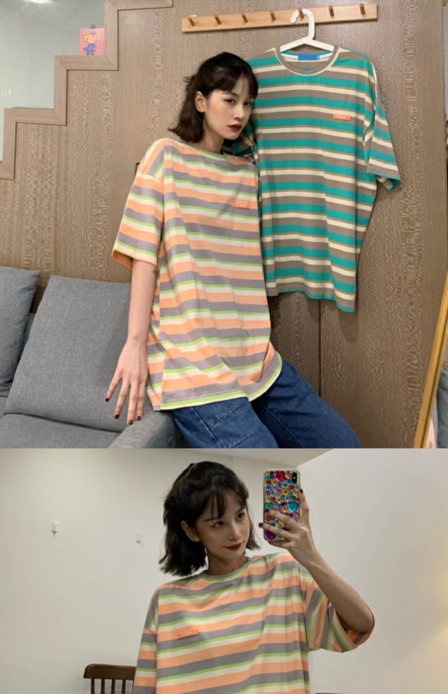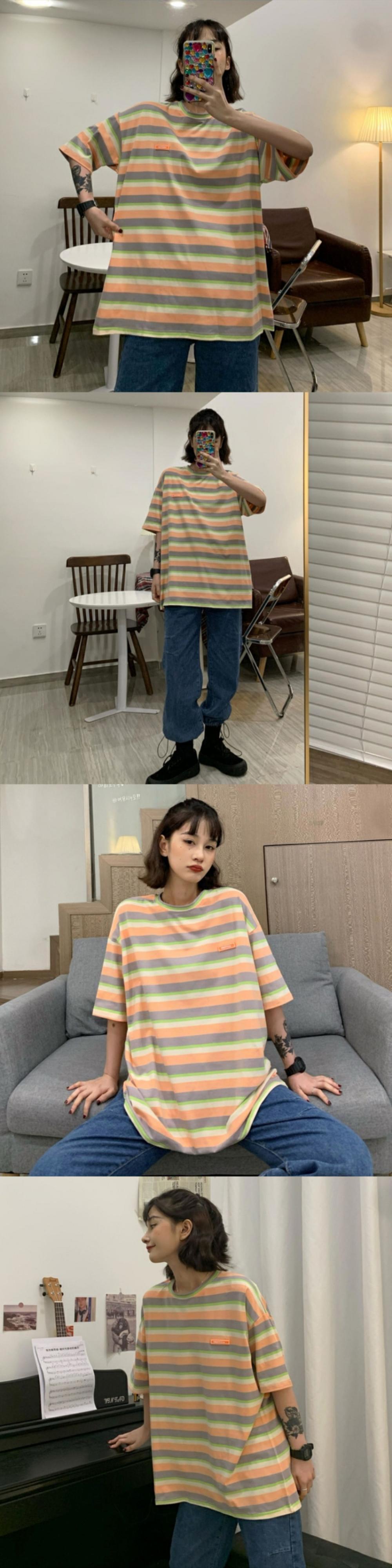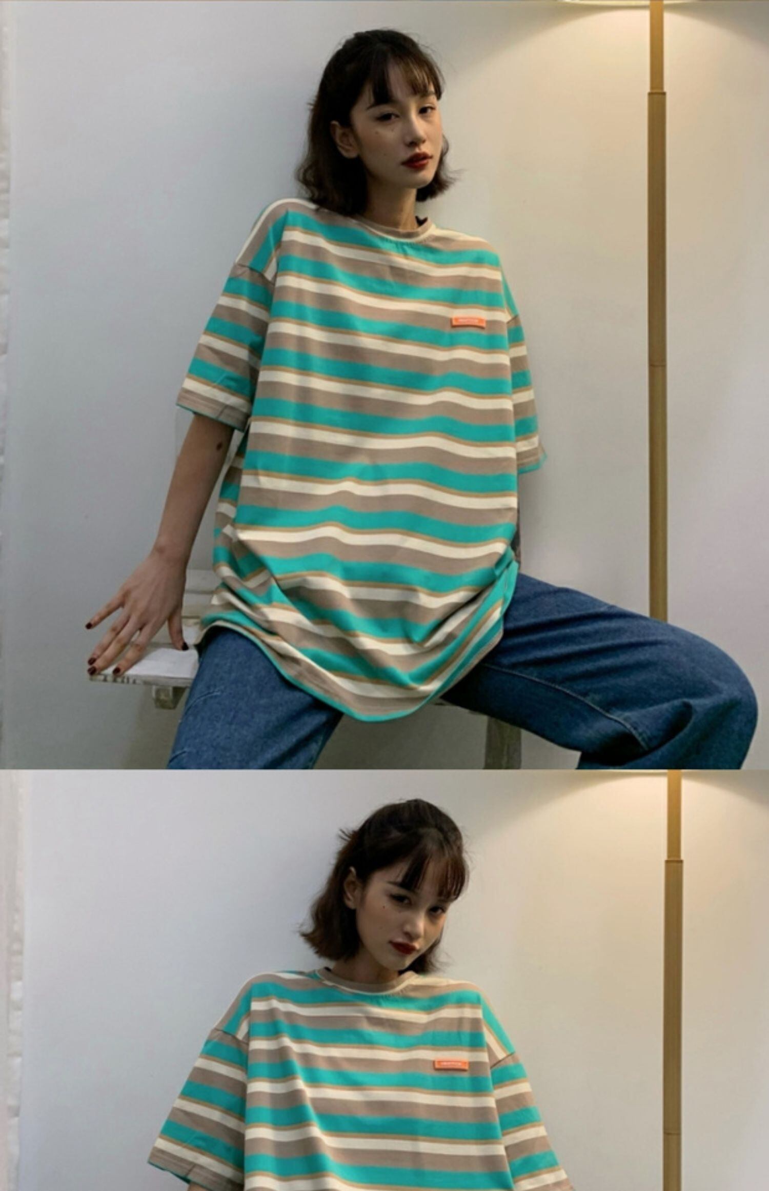 サマールーズストライプTシャツ ロングカジュアル 夏物 ケッペル88869110875