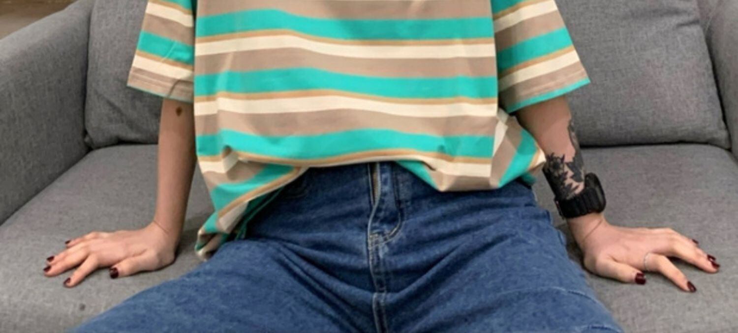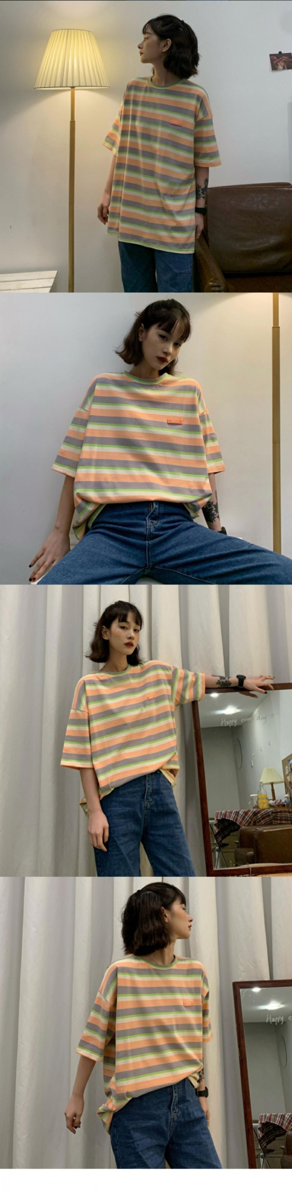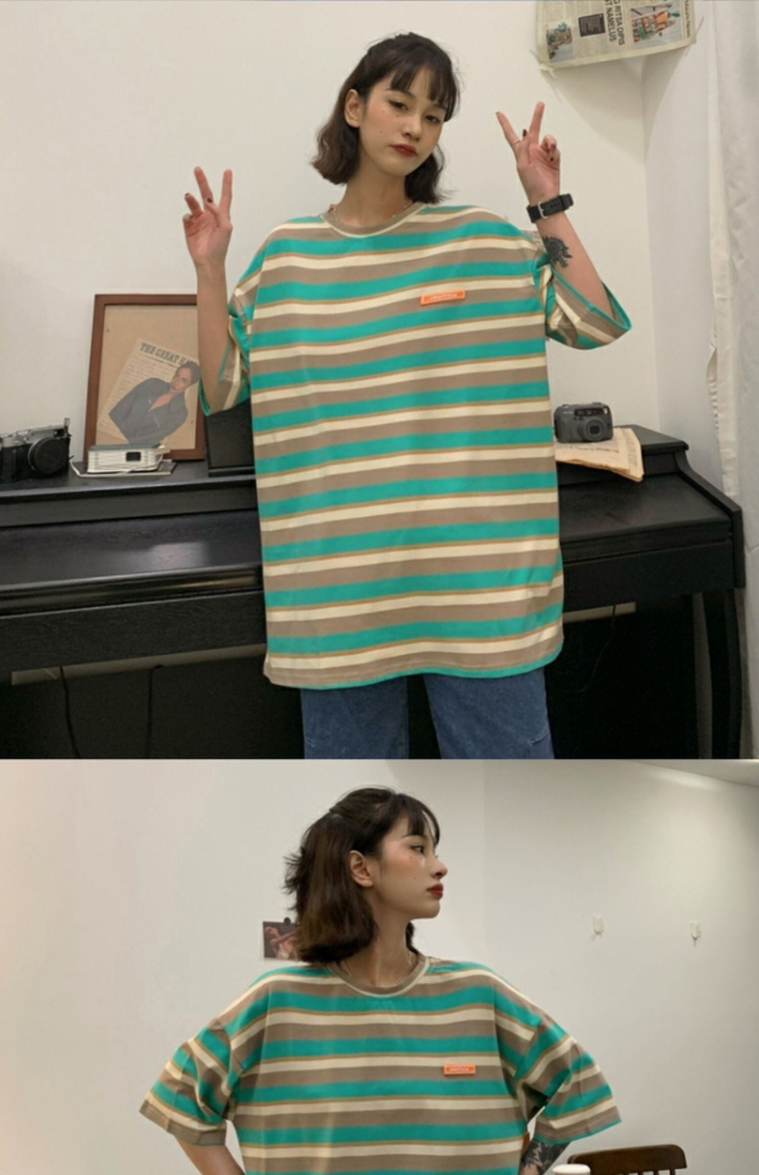 サマールーズストライプTシャツ ロングカジュアル 夏物 ケッペル88869110875