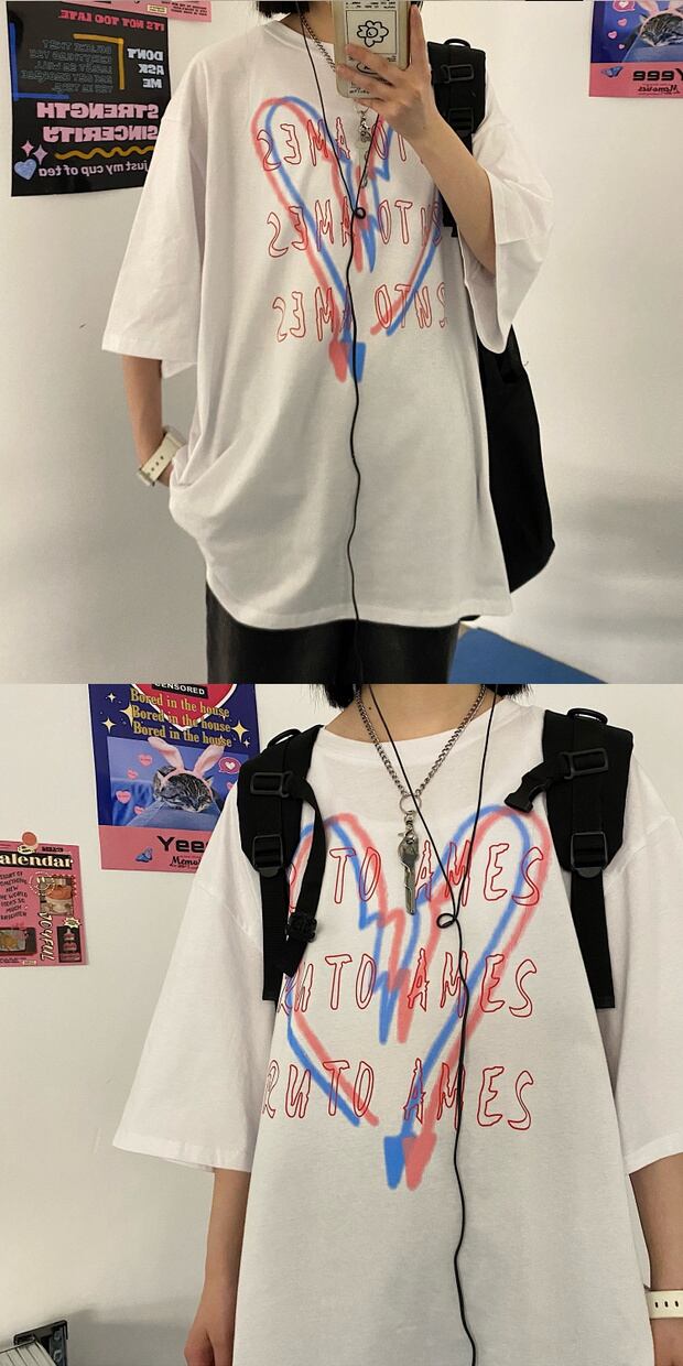 スタイルサマープリントTシャツ レディースルーズトップス ストリート 大きめサイズ かわいい 夏物 ケッペル56832263405