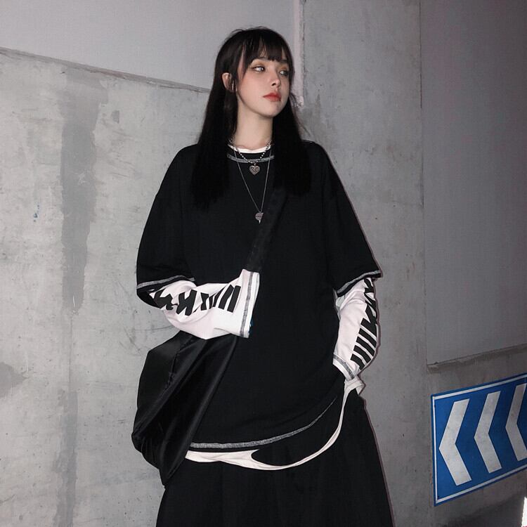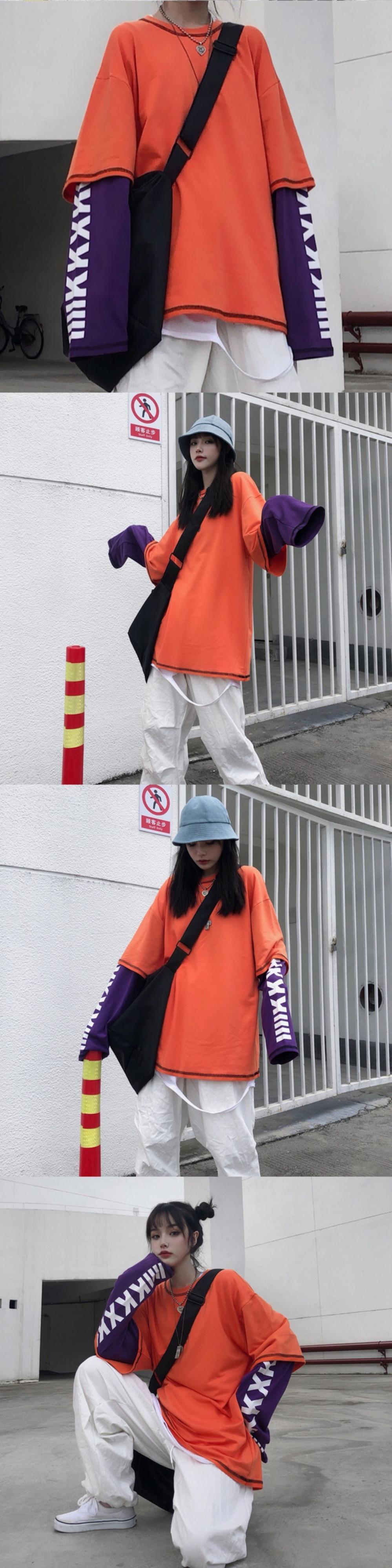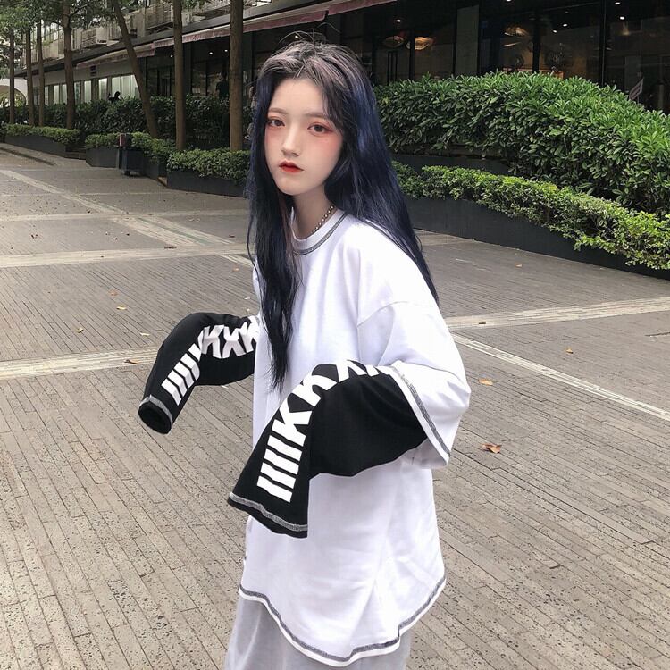 ルーズスタイルオータムトップス レディースラインプリント シャツ かわいい 秋物 Tシャツ ステッチ ケッペル28409654540