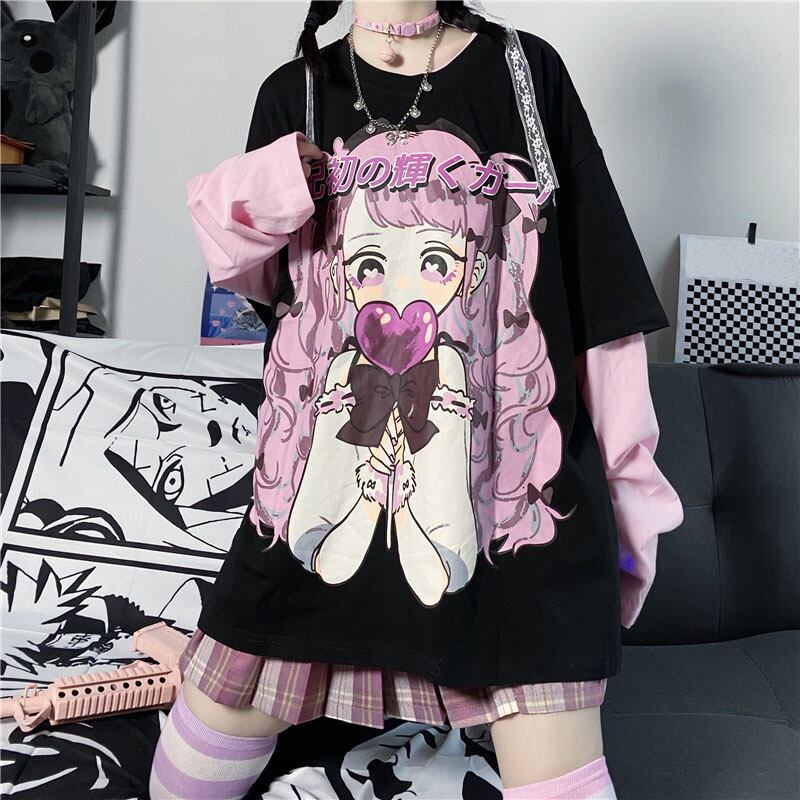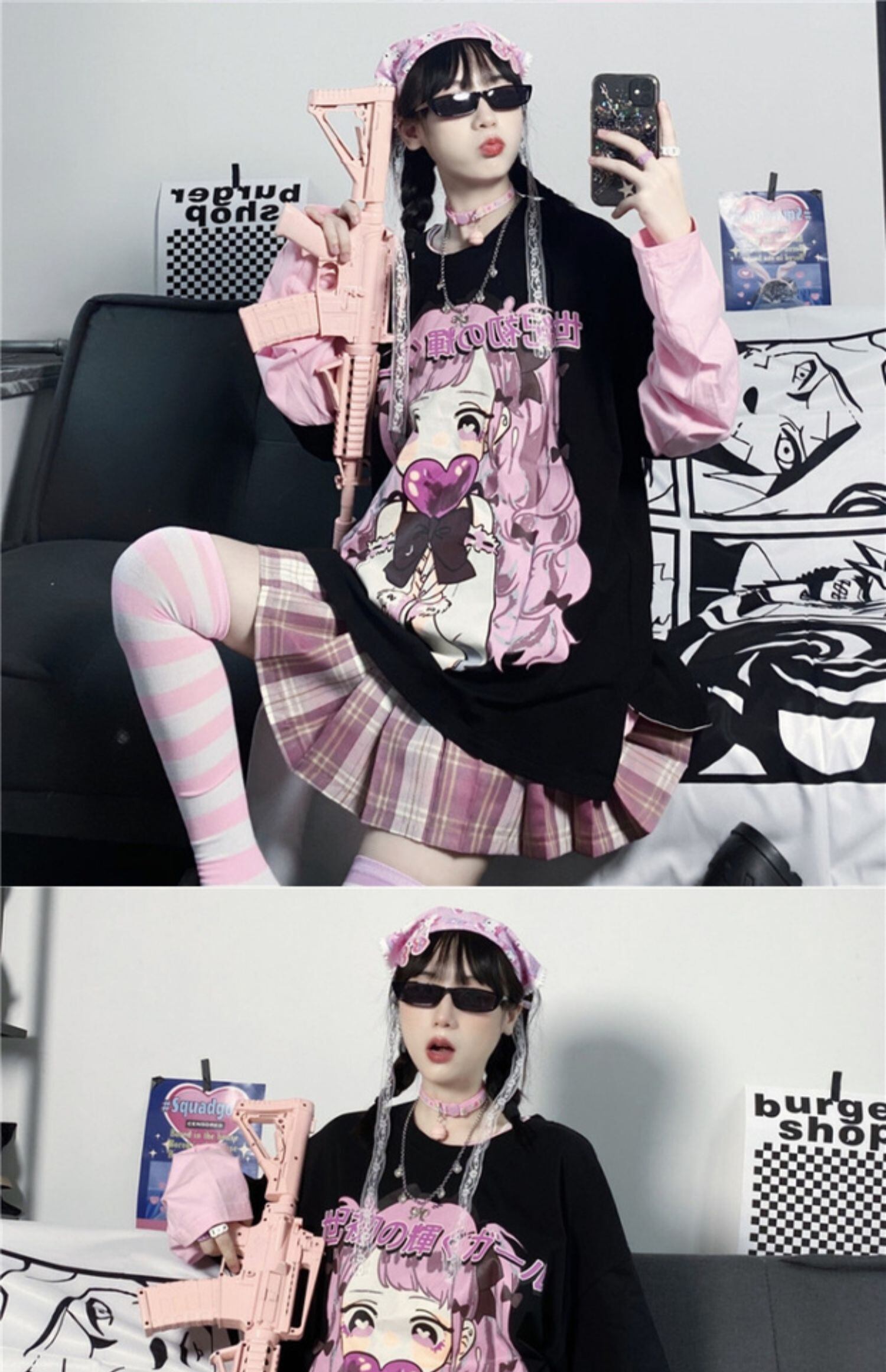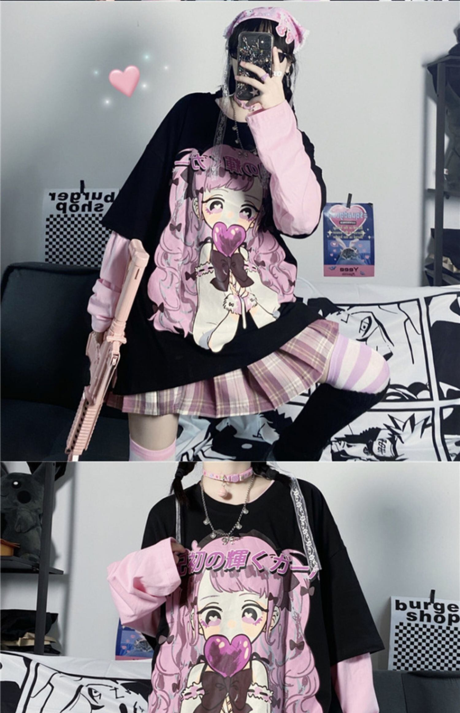 オータムレッドプリント柄トップス カジュアルルーズ ロング シャツ かわいい 秋物 Tシャツ ケッペル34085346698