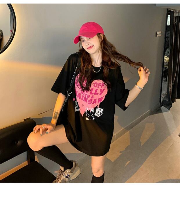 スタイルルーズTシャツ サマーラウンドネックカジュアルトップス ストリート 夏物 Oネック ケッペル94827490853