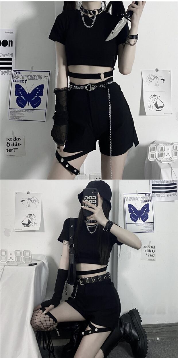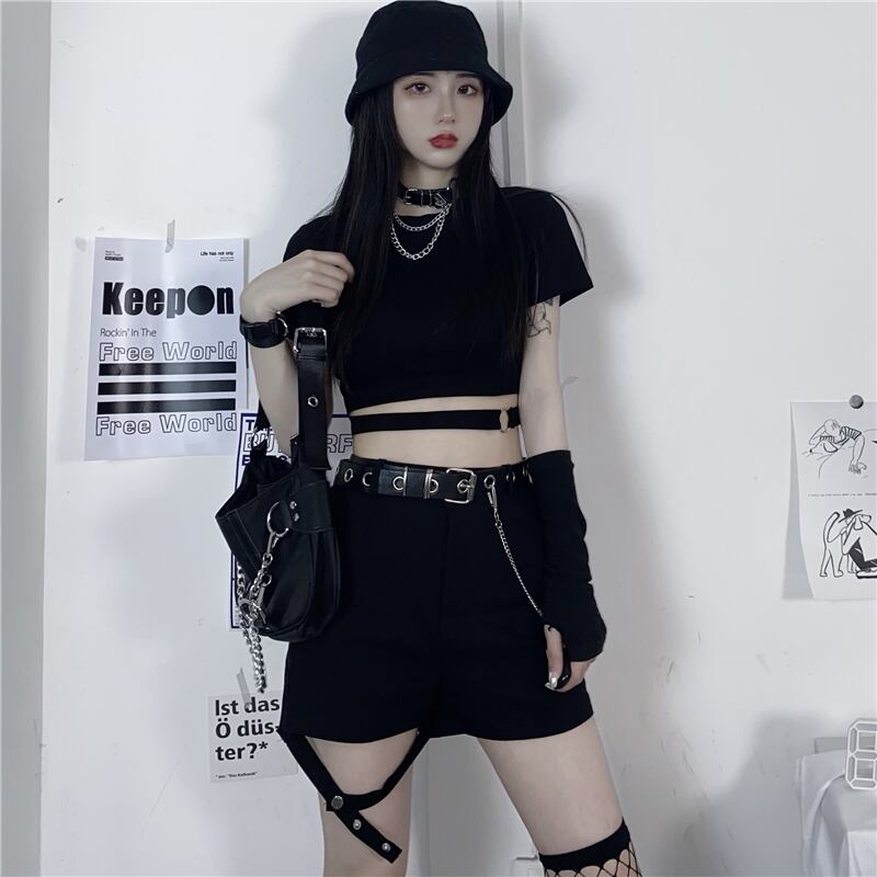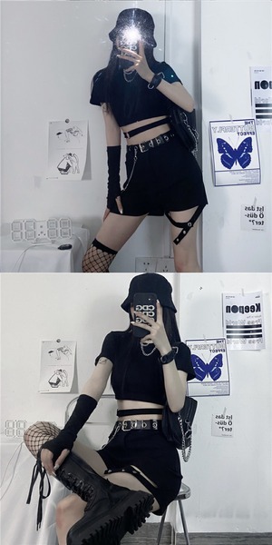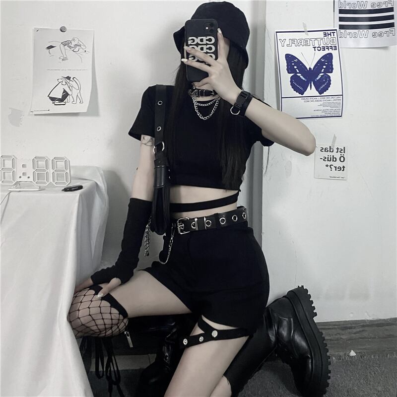 ダークサマーカジュアルハイウェストショーツ パンツ クロップドTシャツ ショート 大人ガーリー スウィート キュート 夏物 ブルマー ケッペル89549754901