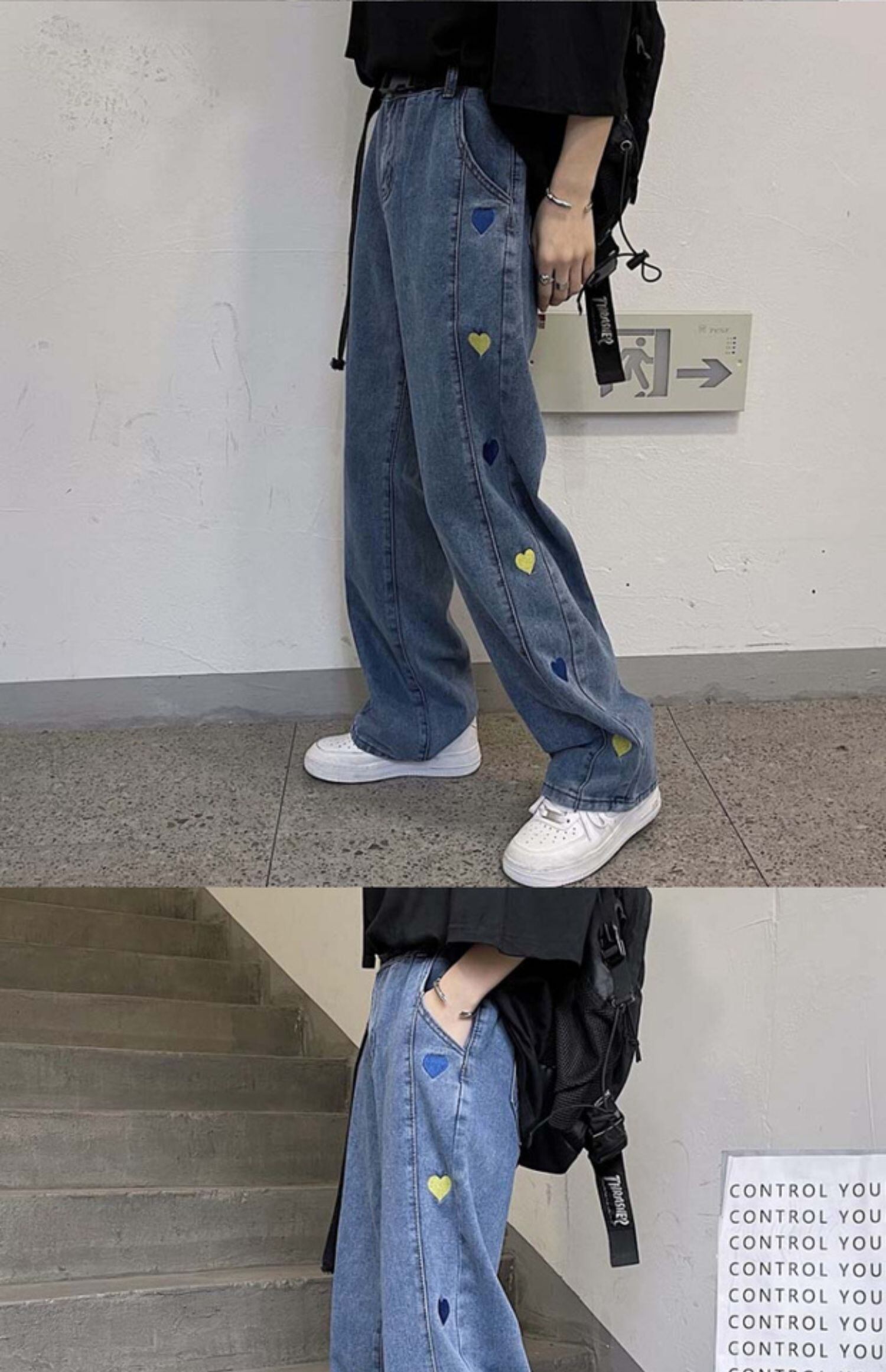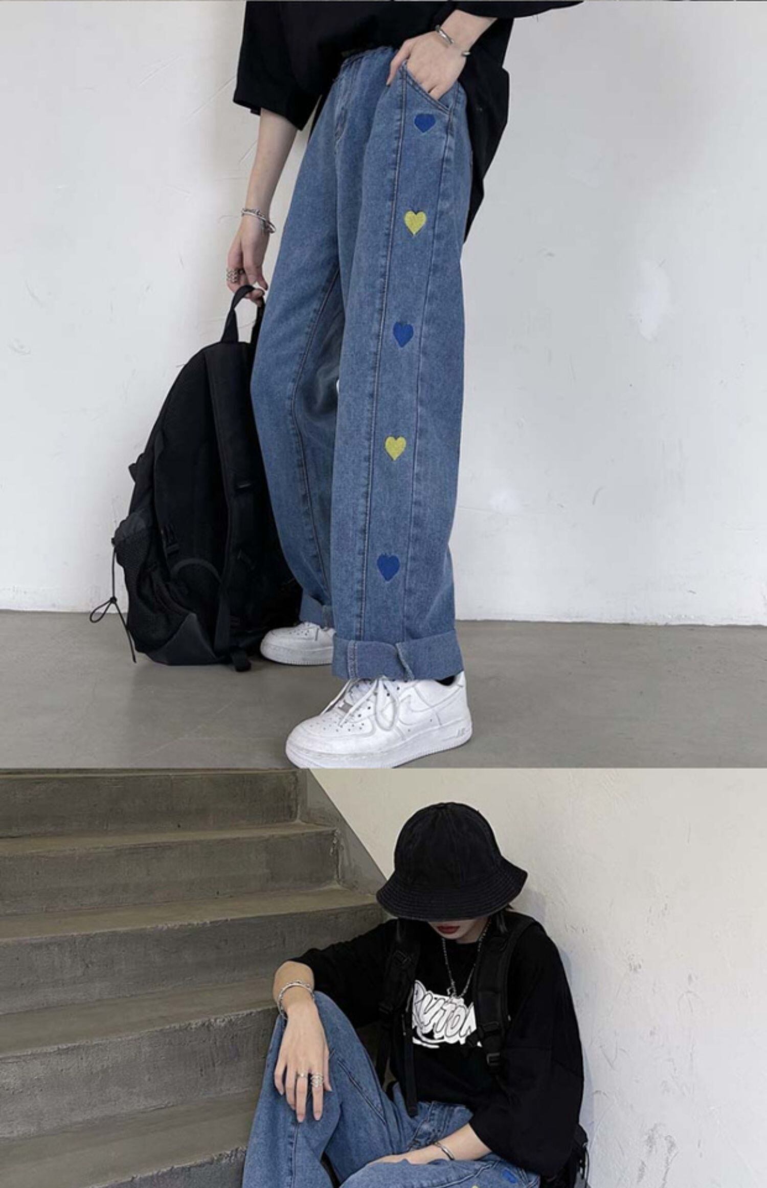 スタンダードスタイルパンツ カジュアルジーンズ ルーズハイウェスト薄手 レトロ ケッペル30291660324