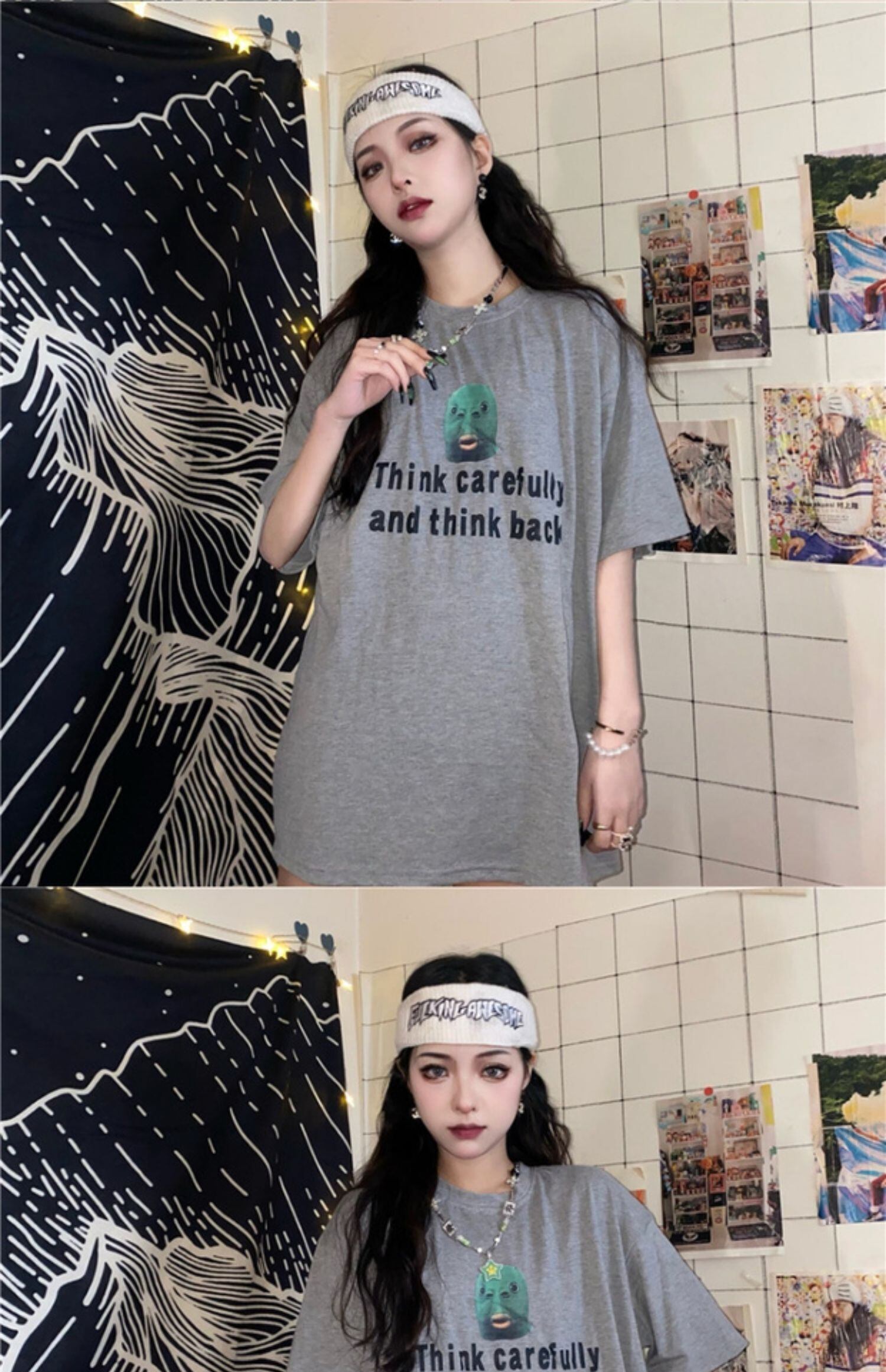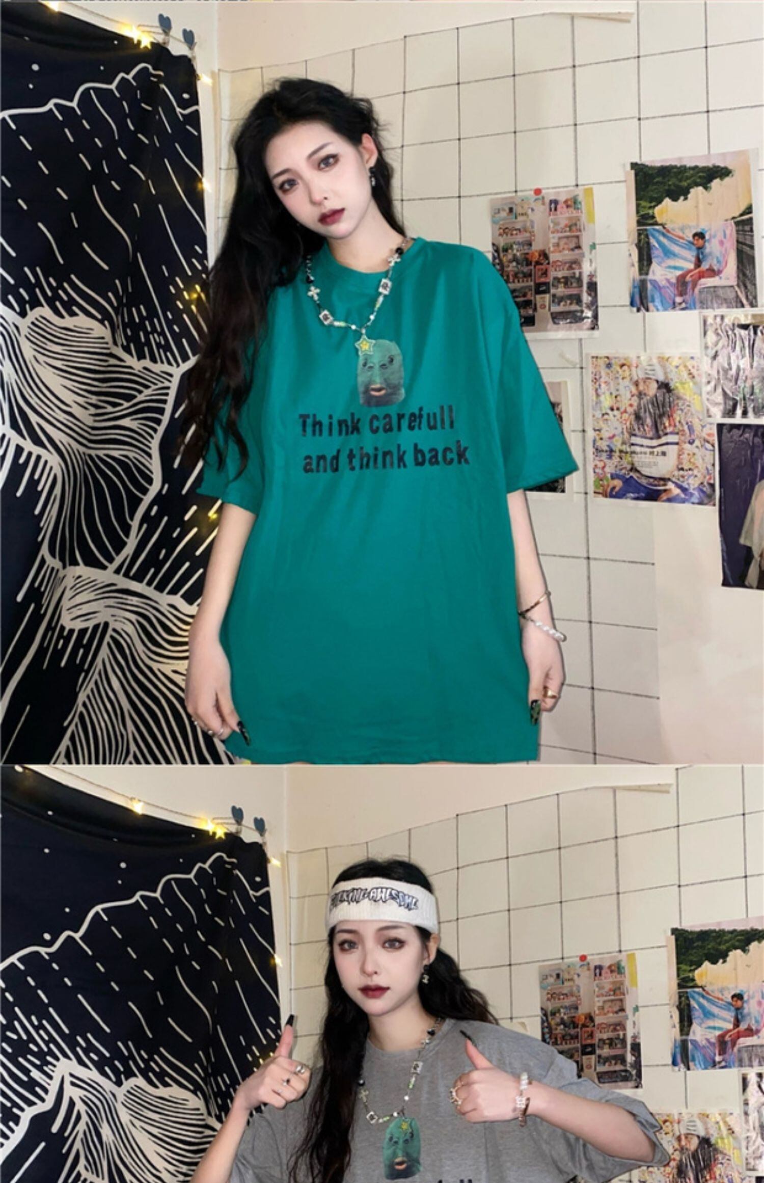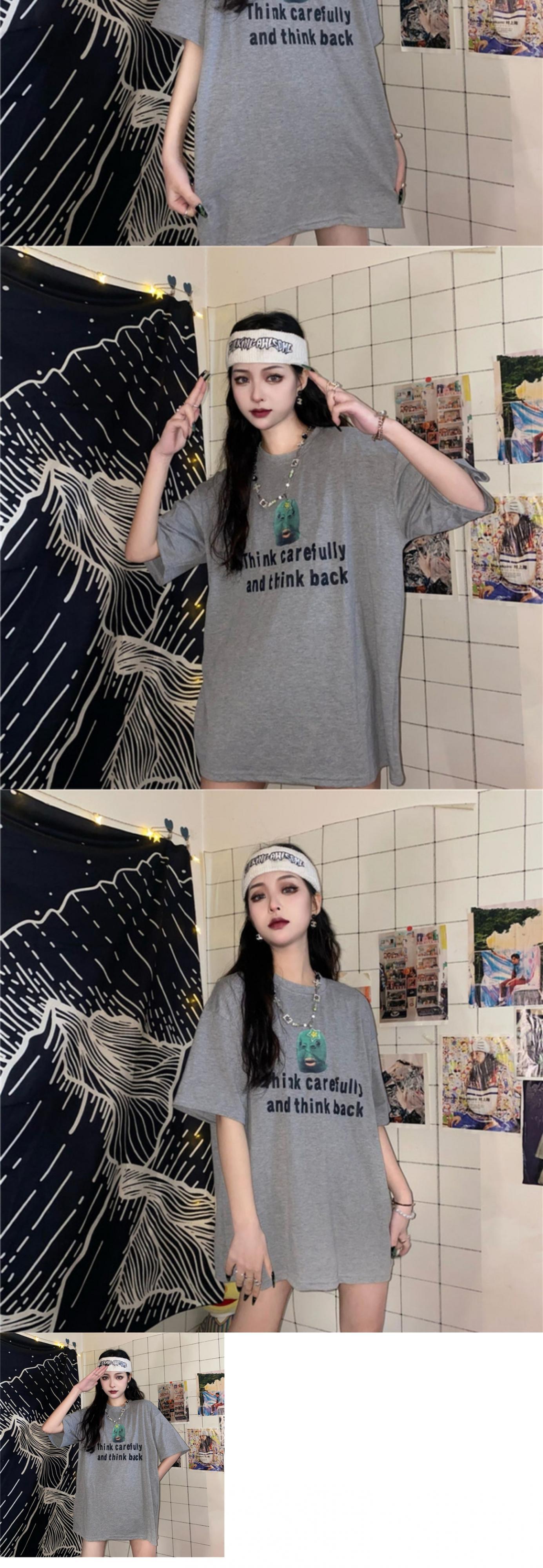 スタンダードプリントTシャツ レディーススプリングサマールーズラウンドネックトップス レトロ 春物 夏物 Oネック ケッペル54899303872