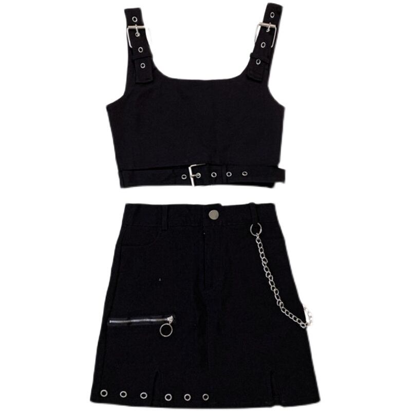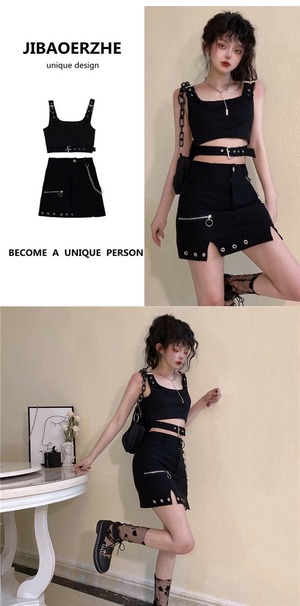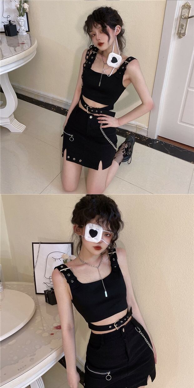 色:黒のベスト,黒スカート