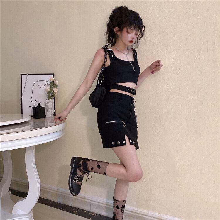 サマーメタルバックルショートダークミニスカート 夏物 ケッペル24630731245