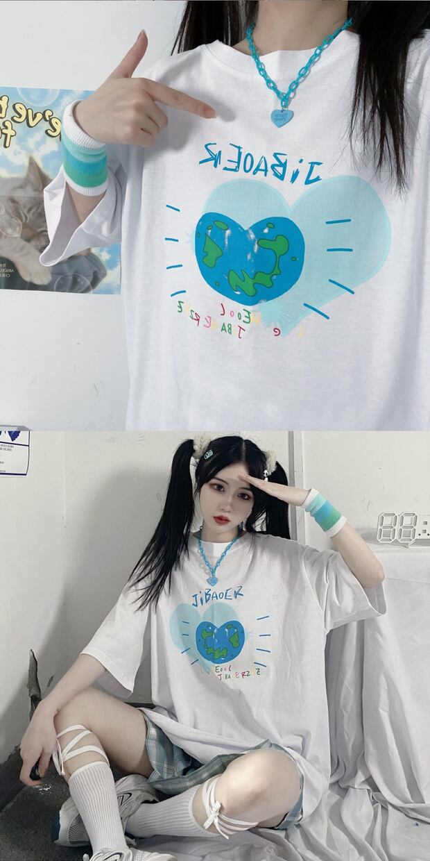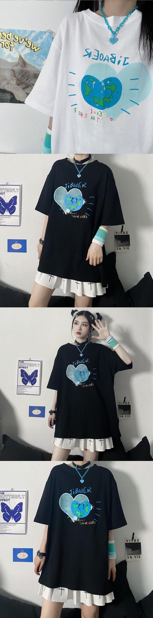 スタイルサマールーズTシャツ プリントカジュアル ストリート 夏物 ケッペル4179210608
