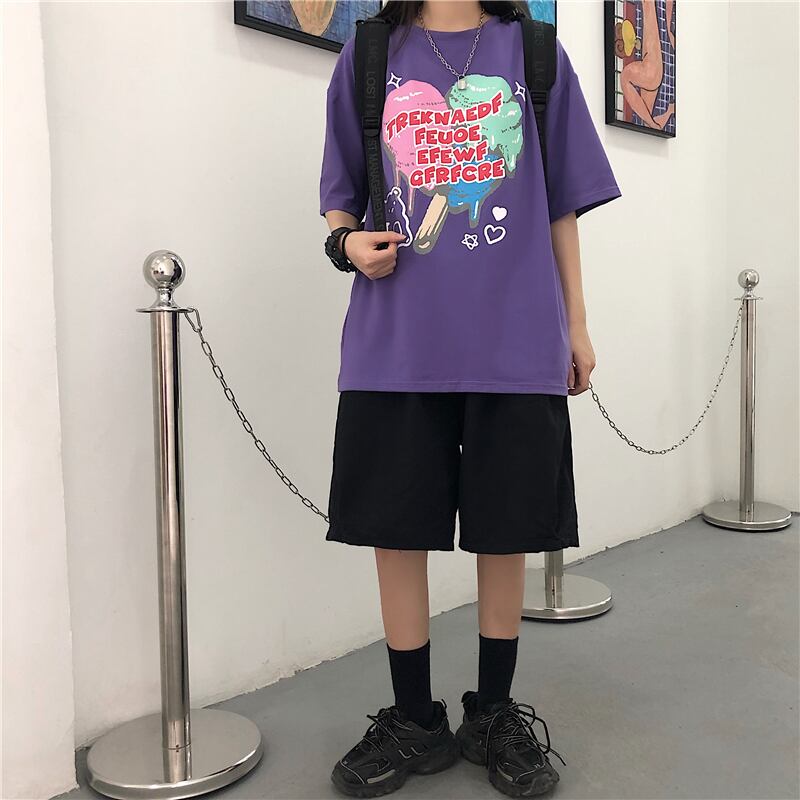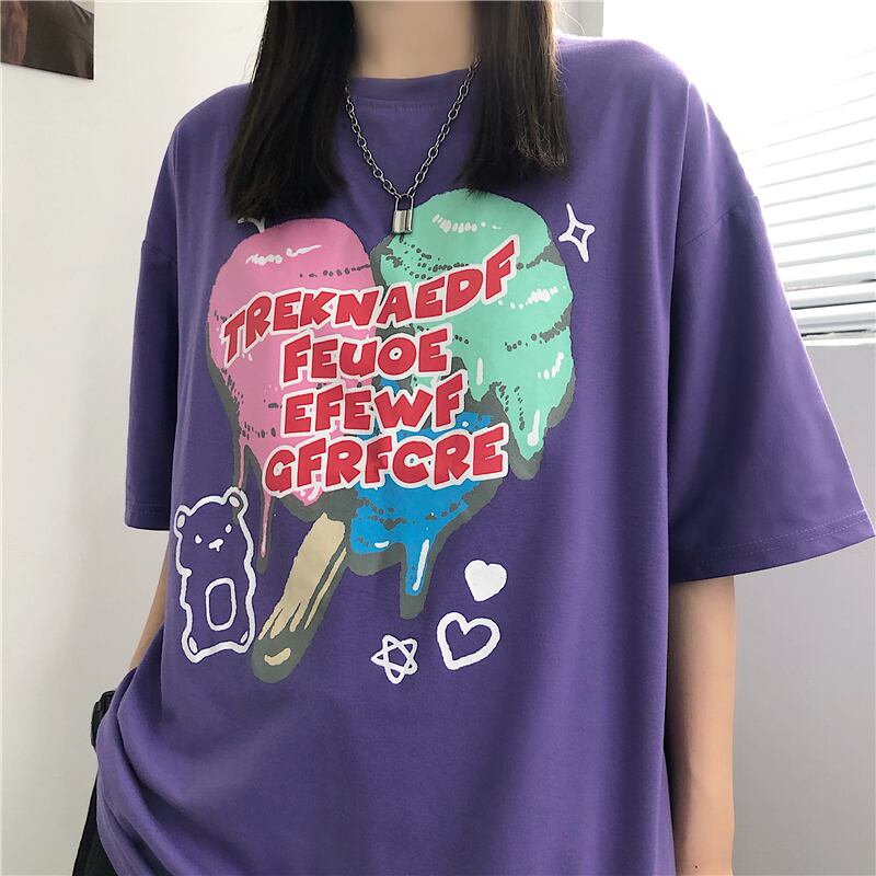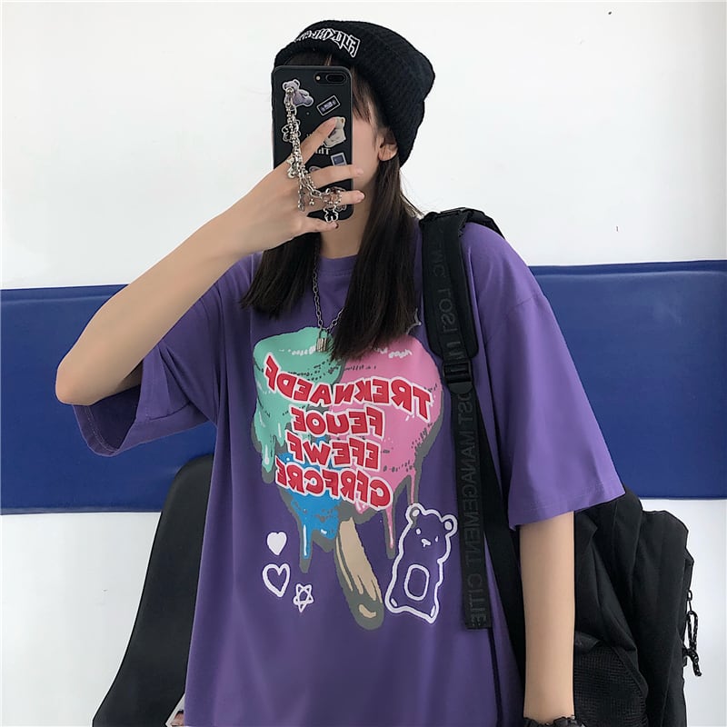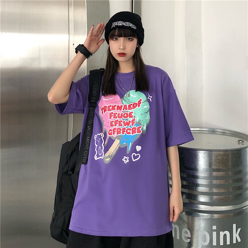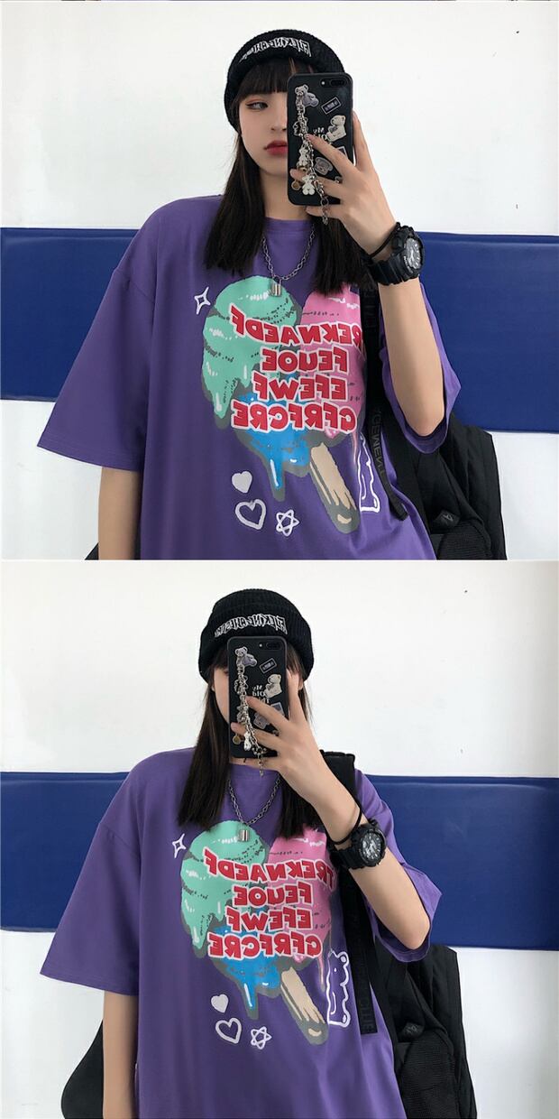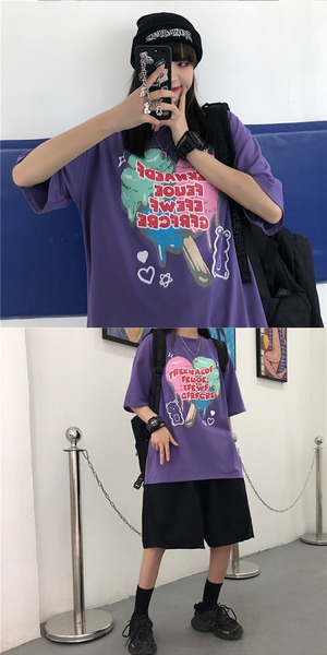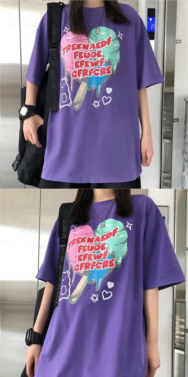 スタイルルーズスリーブレディースカジュアルTシャツ ロングプリント半袖 ハーフスリーブ 大きめサイズ ケッペル62943994720