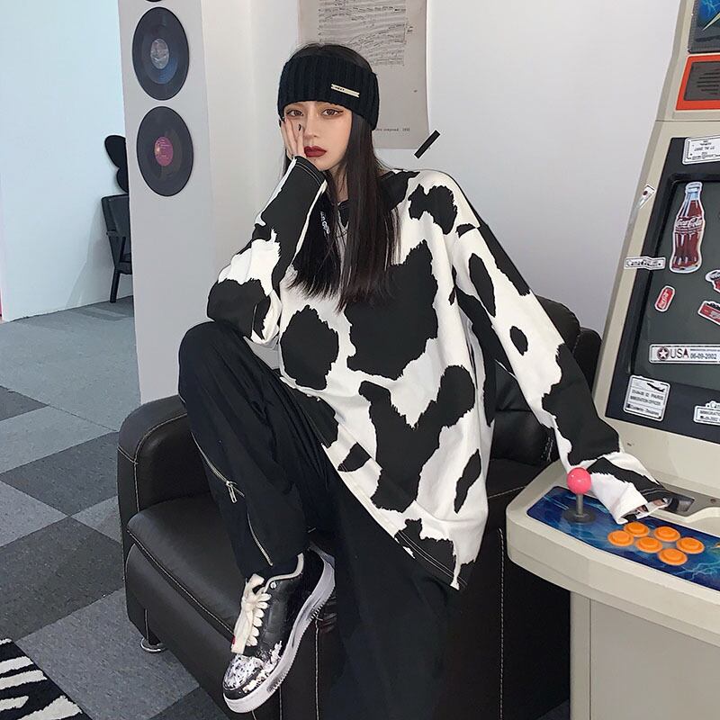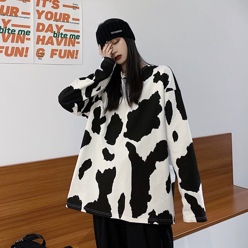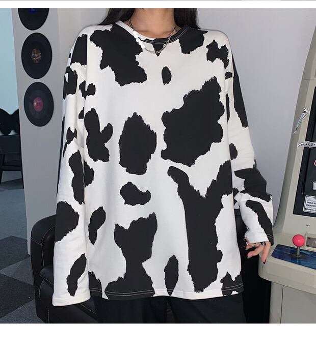 ルーズダークプリント柄トップス レディースシャツ Tシャツ ロング 大きめサイズ かわいい ケッペル66087100961