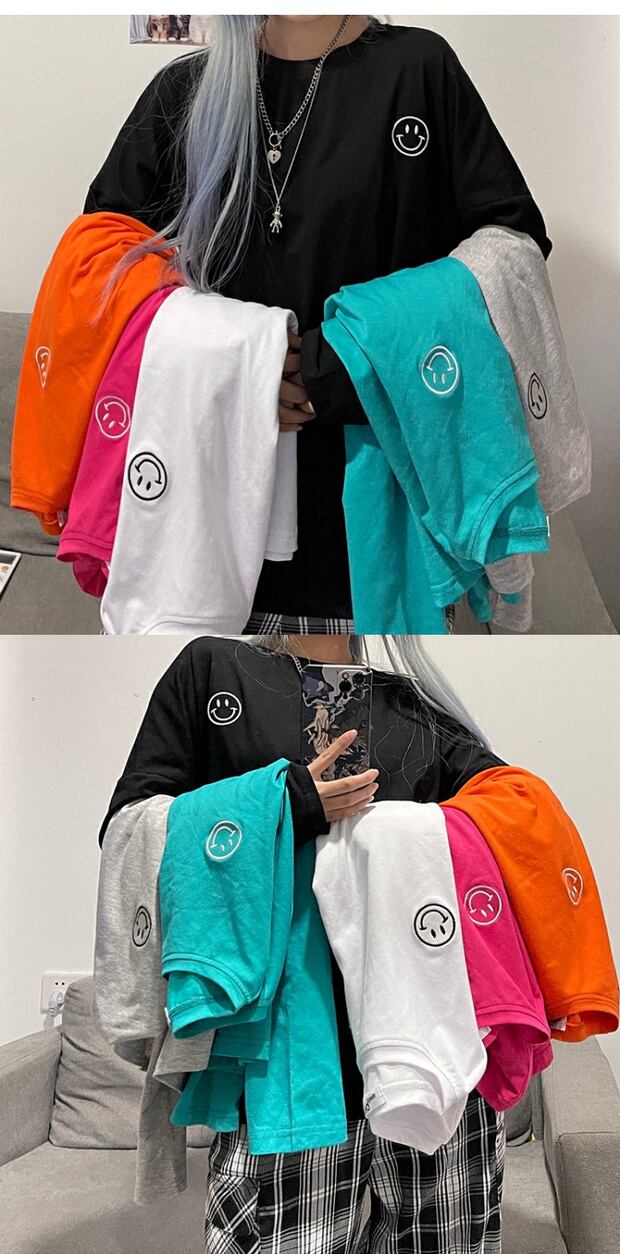 スプリングサマーカラー刺繍Tシャツ シャツ ルーズベーシック 春物 夏物 ピュア ケッペル86721733373