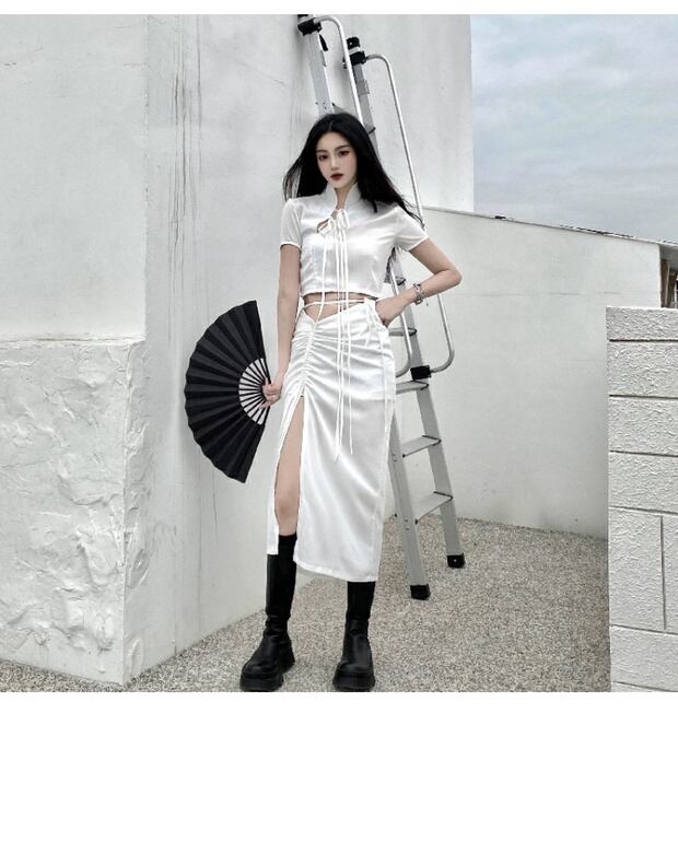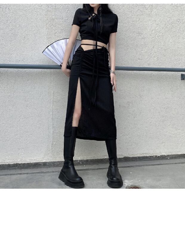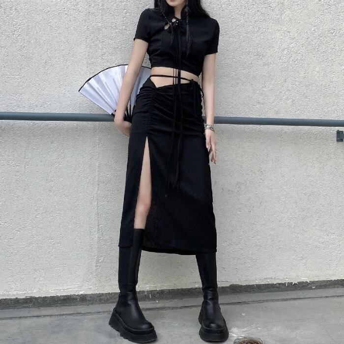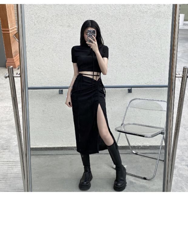 スリムサマーショートTシャツ トップス ハイウェストウェストスカート 夏物 ケッペル71628986240