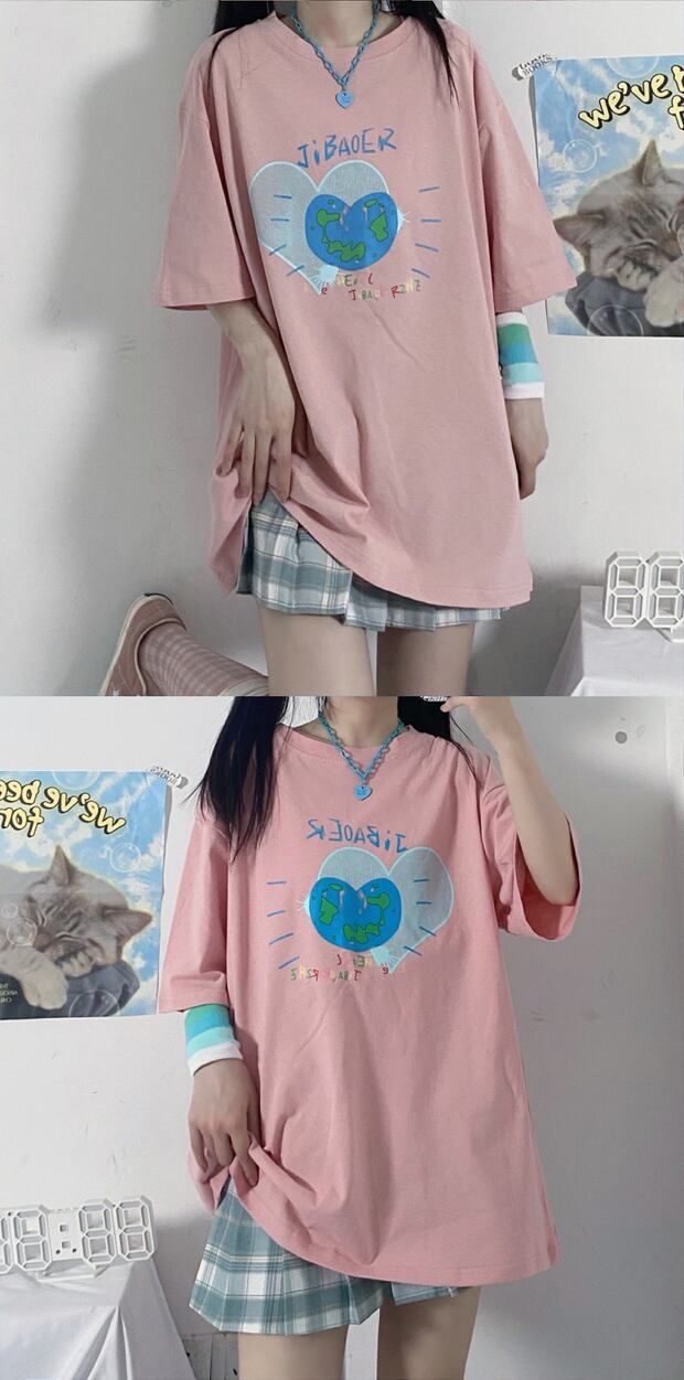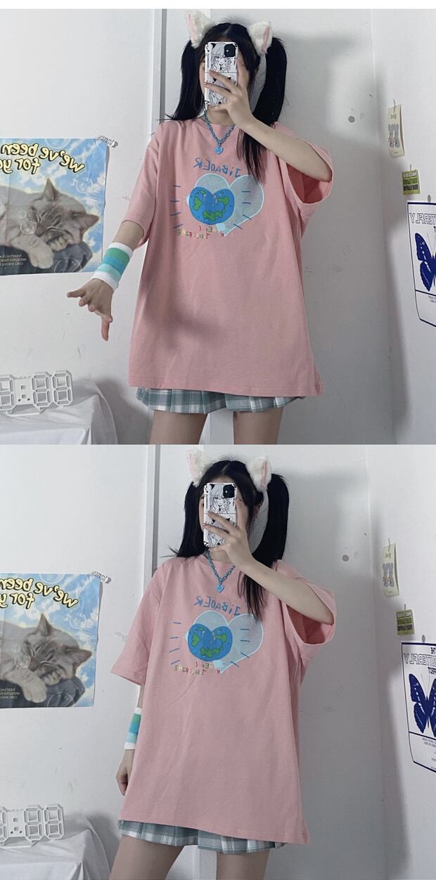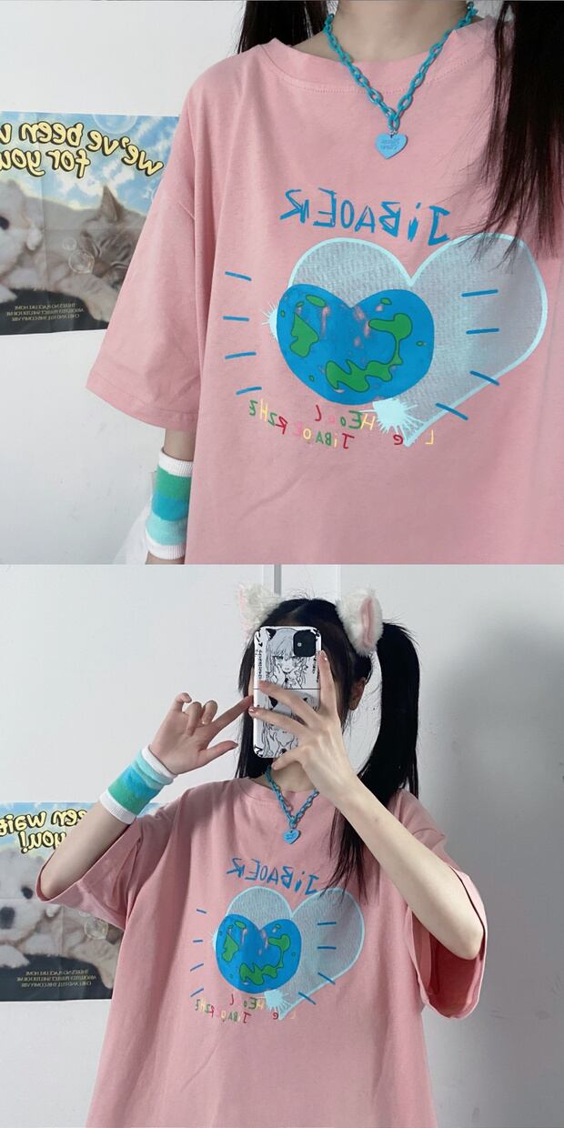 サマープリントTシャツ ルーズ 夏物 ケッペル58876147459