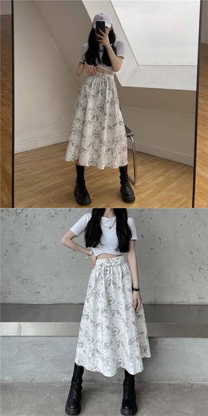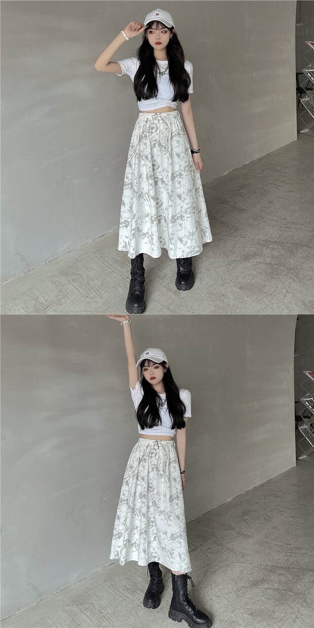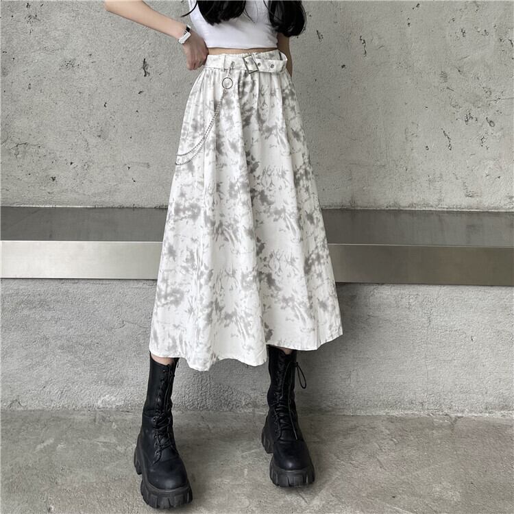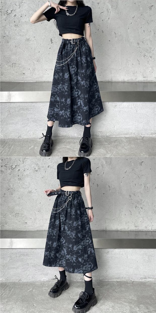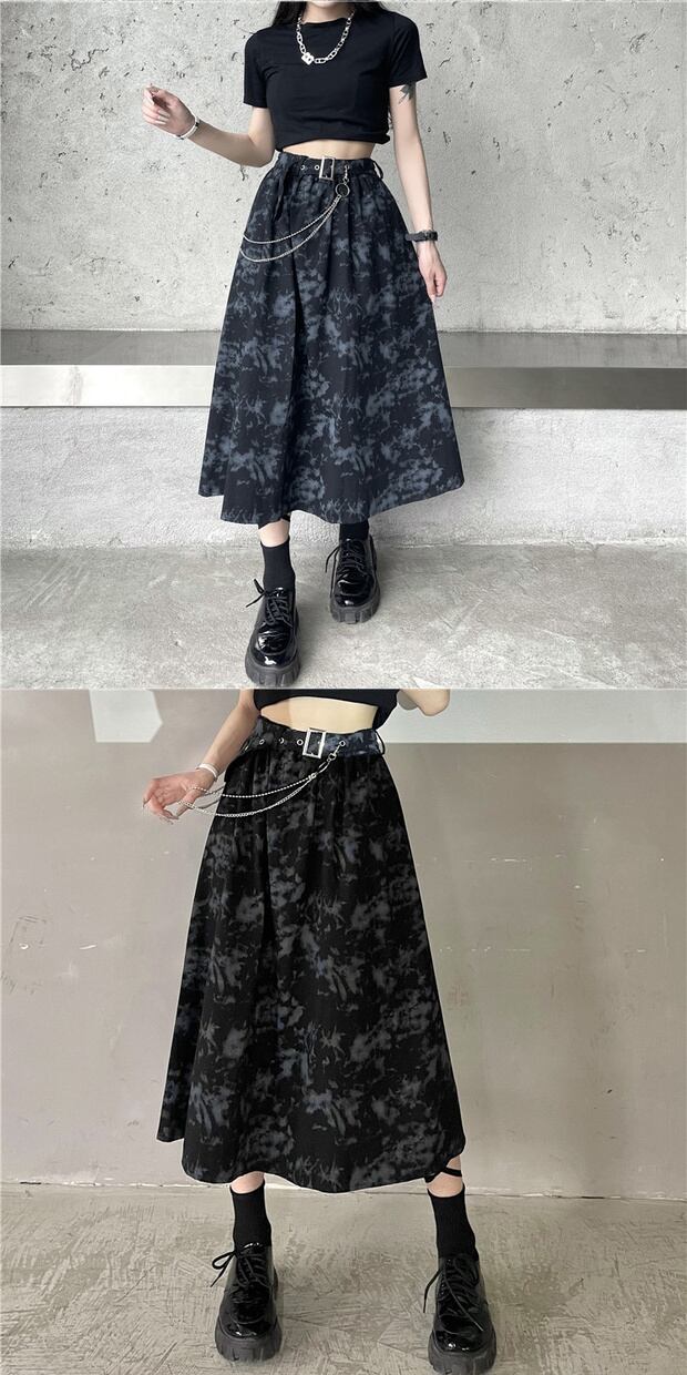 サマーロングスカート ダークスタンダードルーズハイウェストウェストAライン レトロ 夏物 ケッペル71742976420