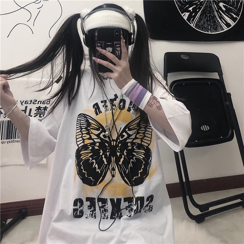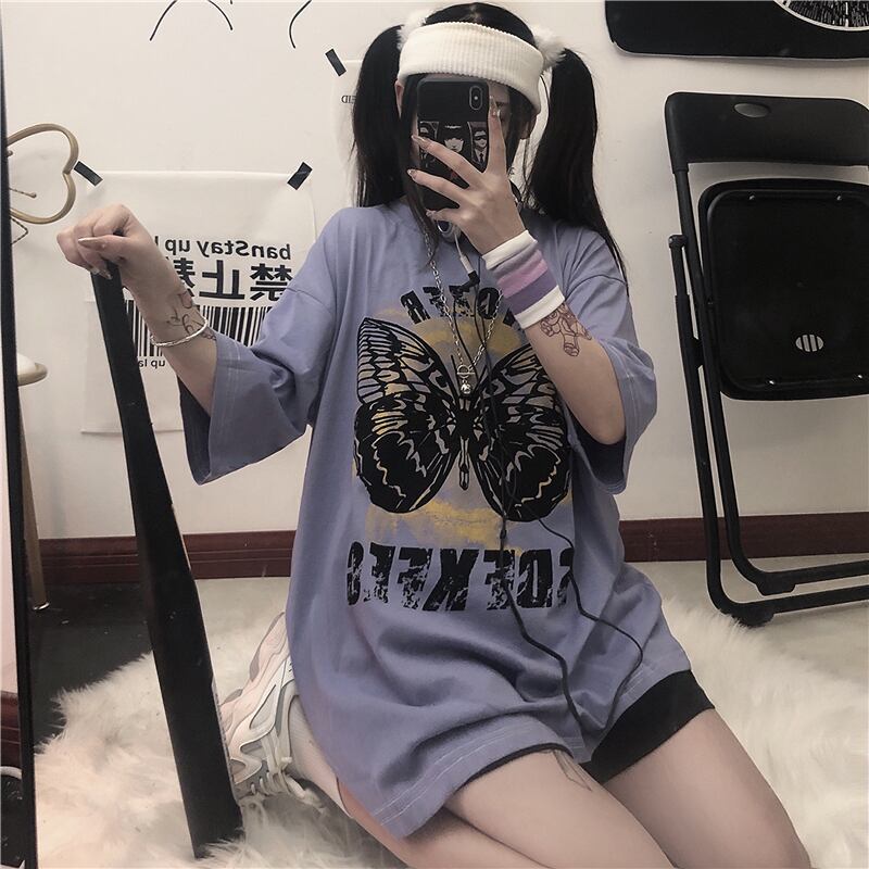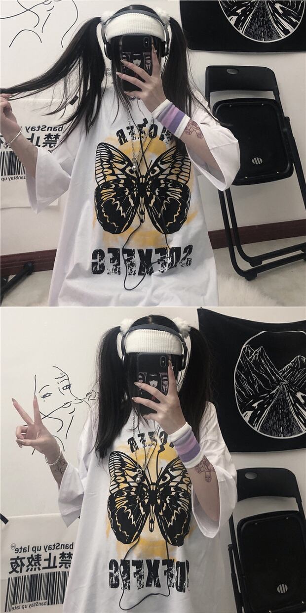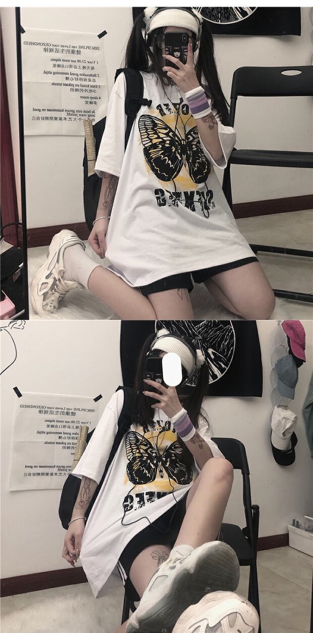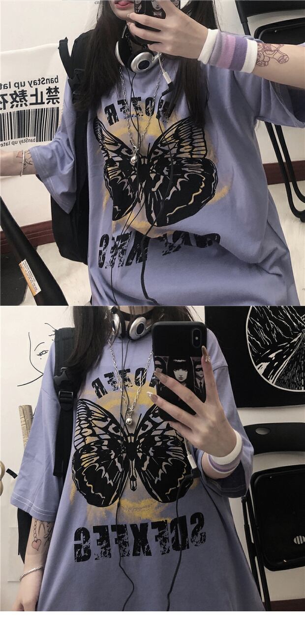 スタイルロングサマーTシャツ シャツ Butterflyデザイン プリントルーズ かわいい 夏物 ケッペル74717119900
