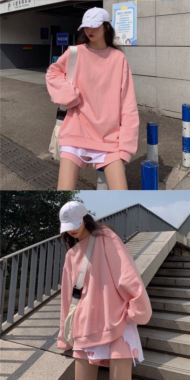 スプリングカジュアルソリッド カラールーズセーター ショーツ ロング 春物 ブルマー ソリッドカラー ケッペル29262352333