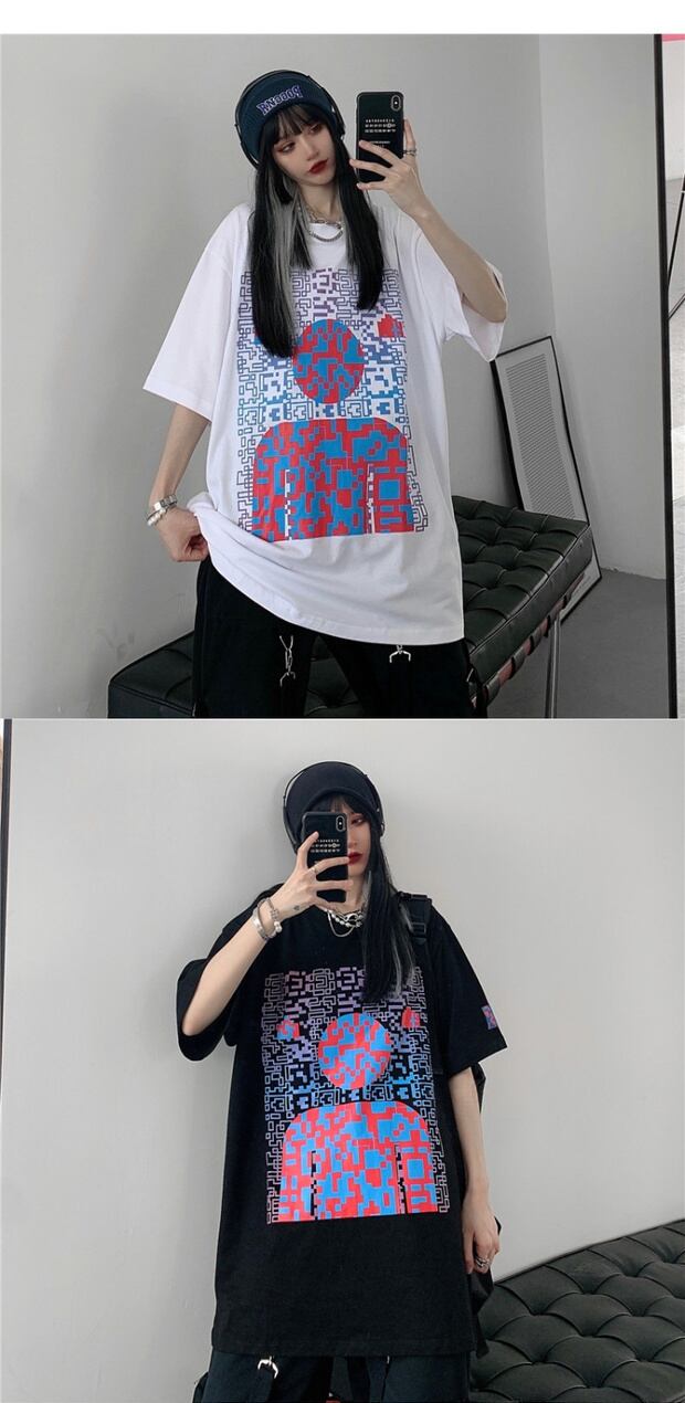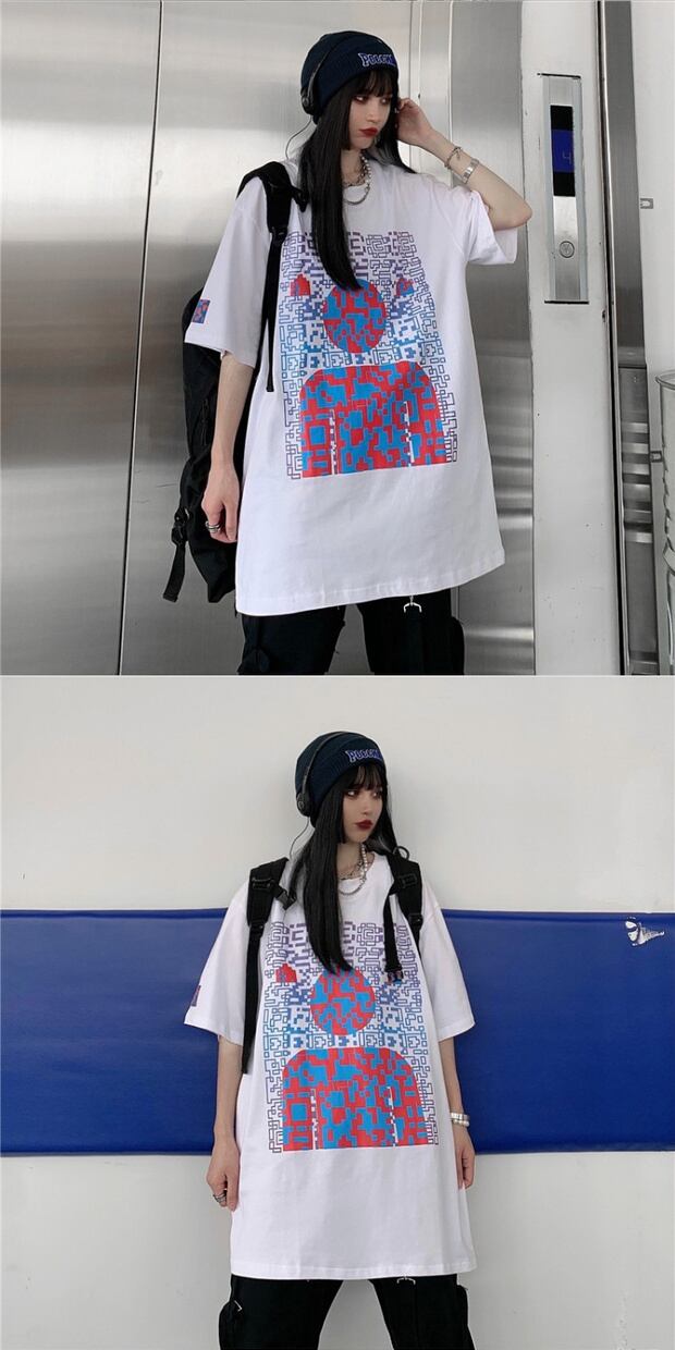 スタイルサマールーズTシャツ レディースプリントカジュアル ストリート 大きめサイズ 夏物 ケッペル513415103