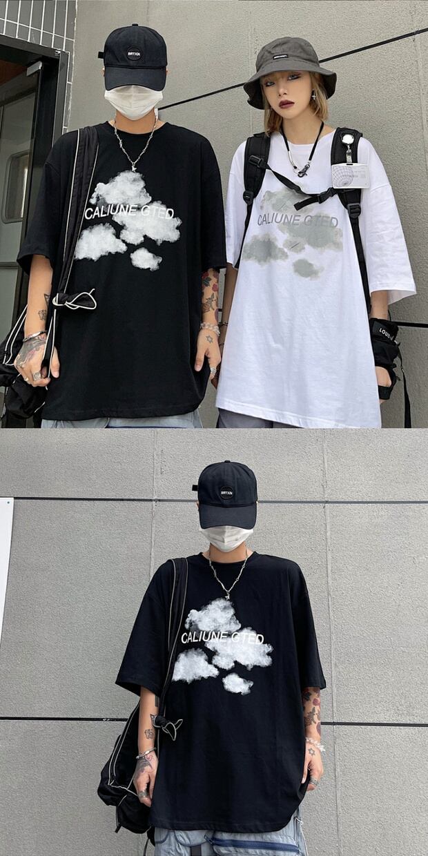 スタイルロングルーズサマーカジュアルプリントTシャツ ラウンドネックトップス かわいい 夏物 Oネック ケッペル89950050848