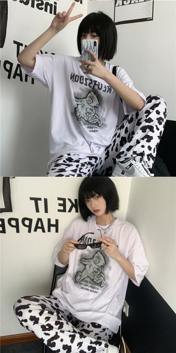 サマールーズカジュアルTシャツ シャツ レディースプリントラウンドネック ストリート 夏物 Oネック ケッペル67714974863